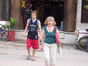 The weather here in Zanzibar continues to be glorious, bright, breezy, and none of the cloying humidity you’d find in the Far East. You can actually sit in the shade and cool down without feeling like you’ve been steamed like a dumpling. The sky and sea are both the sort of blue you only ever see on postcards or Windows desktop backgrounds, a far cry from the dreary grey skies we left behind in England.