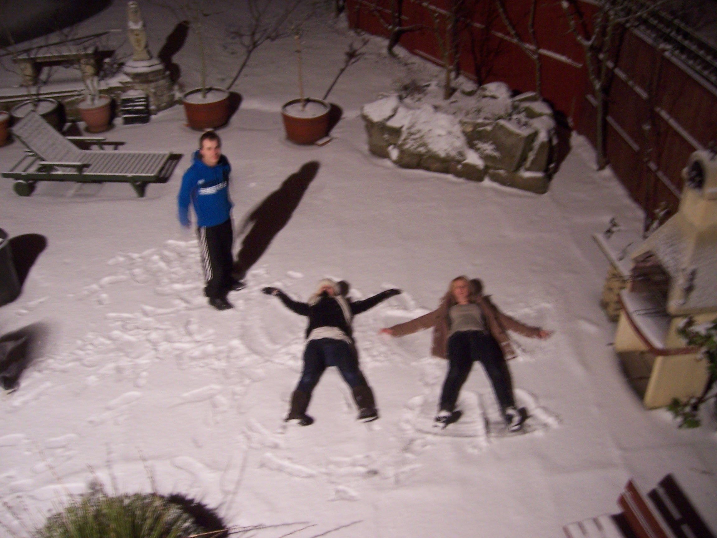 On the day of the snowfall, I picked Sarah up from the University of Sheffield just as the flakes started falling. Just half an hour after arriving home, Charlotte and the children turned up to greet her and was quickly followed by Jamie. True to Palmer habit, the snow caused instant excitement, leading to snowball fights and angel-making. After a brief thaw indoors for hot drinks and to add gloves and hats, they returned outside for round two. Concerned about worsening conditions, we persuaded Charlotte to set off home before dark.