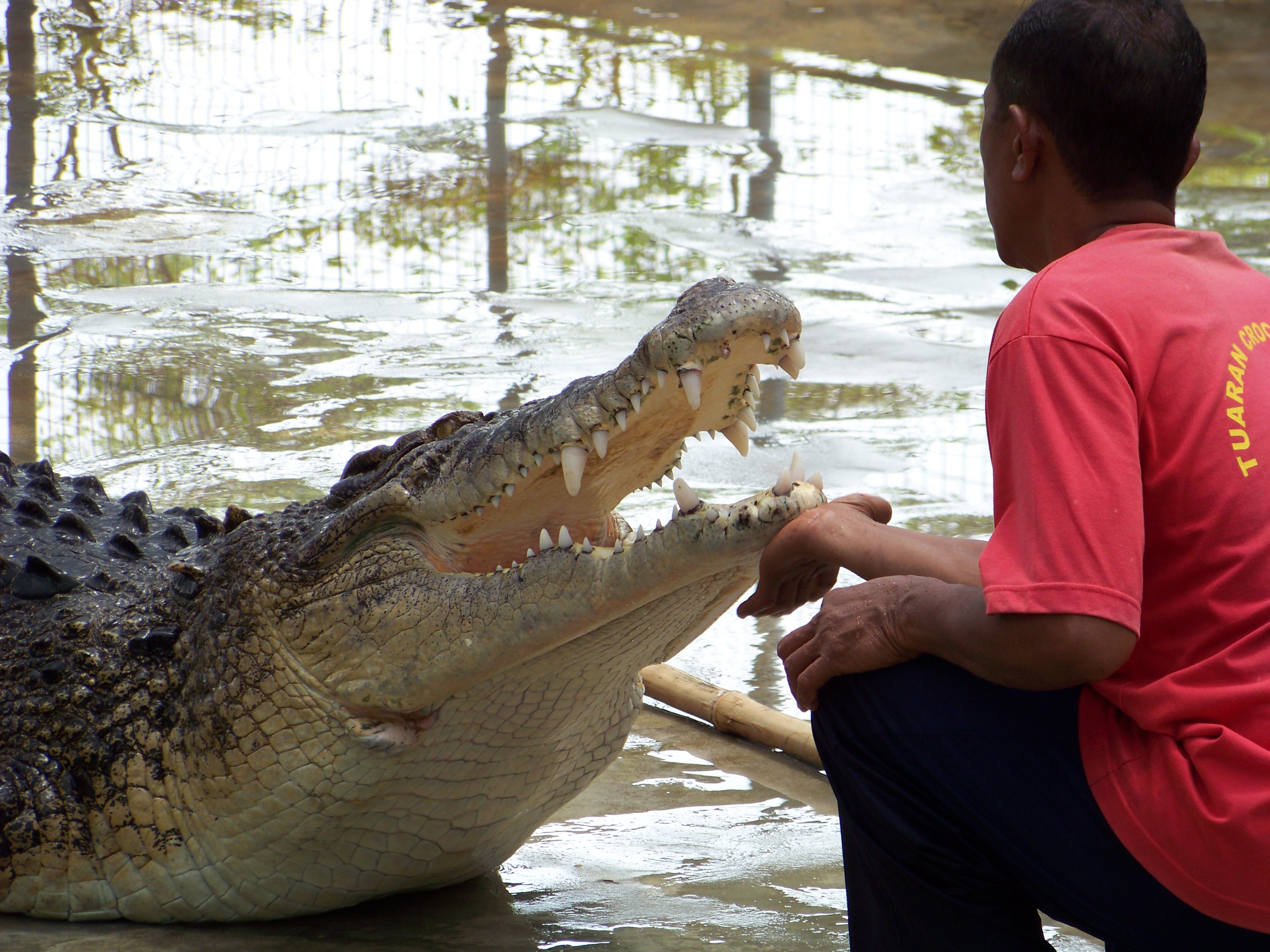 A troupe of daring Malayans then treated us to a series of stunts that fell somewhere between “courageous” and “have you lost your mind?”, lying on the crocs, lifting them, and even placing heads inside their gaping jaws. The crowd gasped; the crocs, I suspect, rolled their eyes.