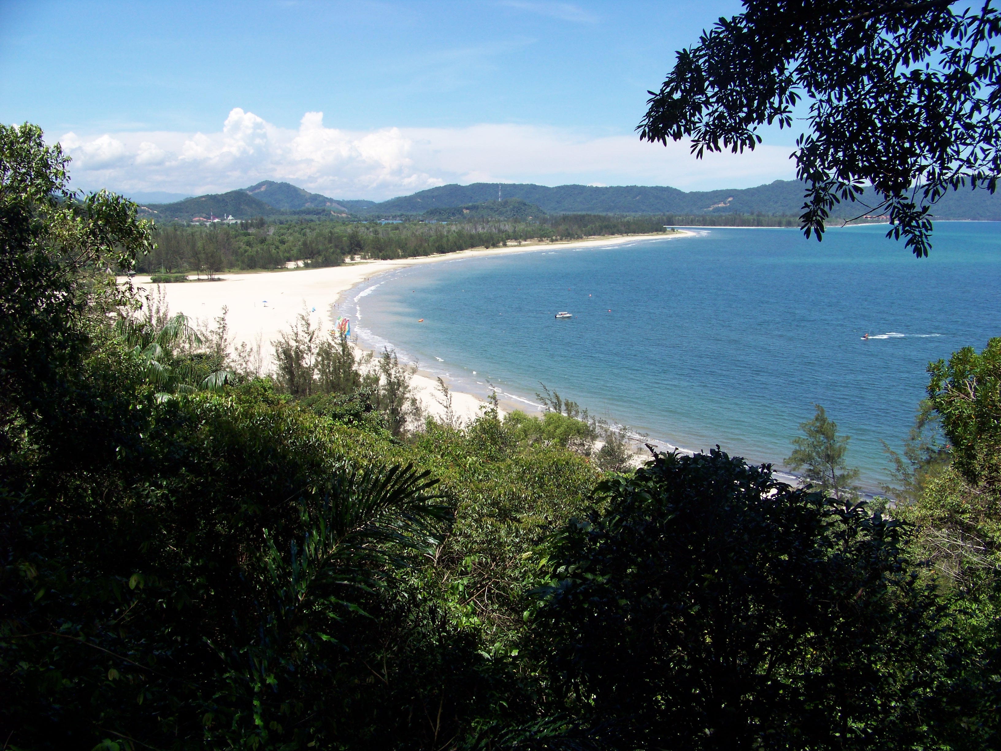 The canopy walk attracted even fewer takers, the weather doing an excellent job of thinning the herd. It wasn’t the advertised three-quarters of an hour, and it lacked the heart-stopping moments of other canopy walks we’ve tackled, but it did reward us with one spectacular view over the beach, worth the effort and the occasional wobble.