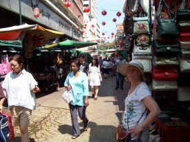 Before heading out for a wander through Chinatown, we dutifully packed our suitcases. With a leisurely 2 pm check-out and an awkwardly timed 8 pm taxi pick-up, we had hours to fill, and no shortage of ideas. We hopped on the monorail to Maharajalela, the nearest stop to our target, and were soon admiring two rather charming Chinese temples just a short stroll away. From there, we dived into Jalan Petaling, the bustling shopping street, where we spent a couple of hours happily rummaging through stalls and shops, pausing only for a much-needed cold drink. As souvenirs, we picked up “authentic” T-shirts for Jamie and Suraj, complete with labels, which clearly proved their authenticity beyond all reasonable doubt.