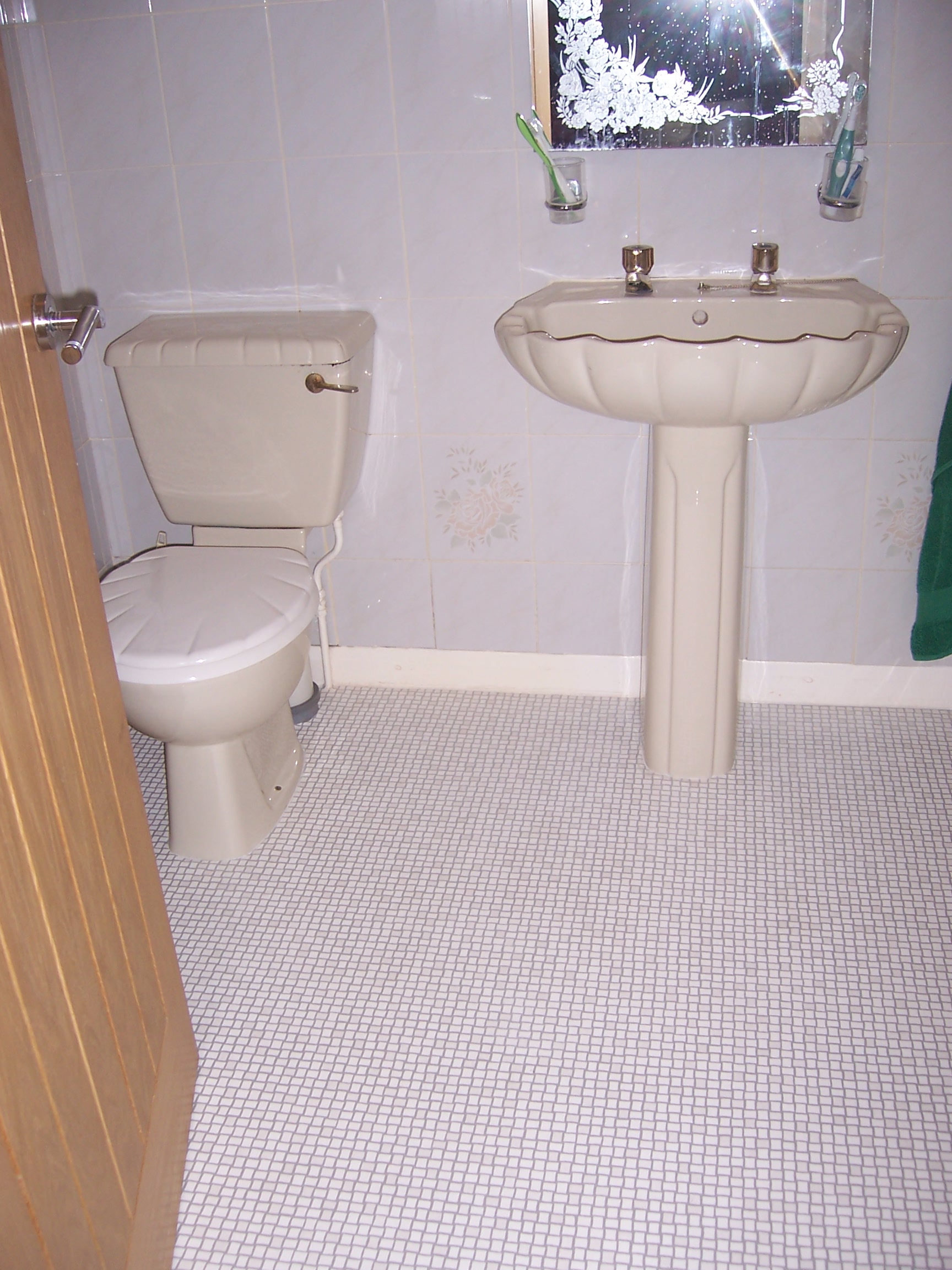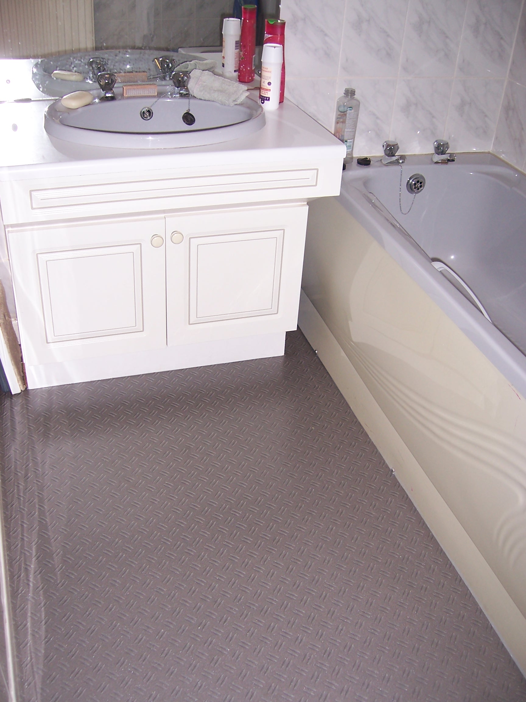 A few weeks ago, we decided it was high time to replace the carpets in the en-suite and the family bathroom. After careful deliberation, we had picked different patterns of linoleum for each room, because why make life easy?