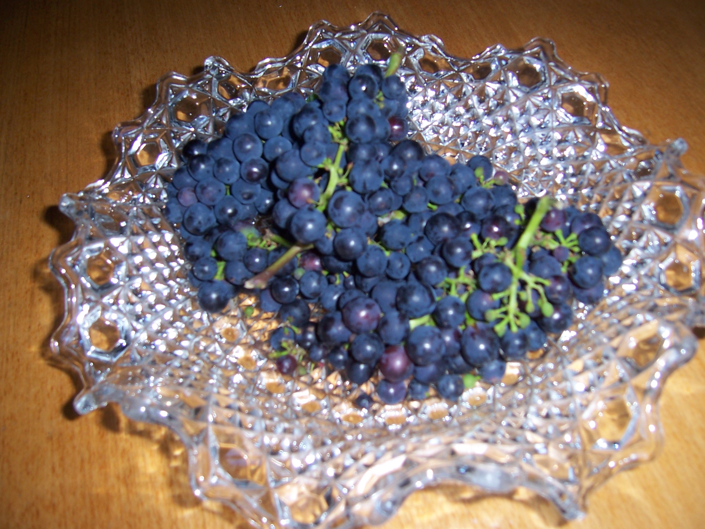 Back at the allotments, production is in full swing. The grapes have now joined the party: the red variety has been ripe for a week, though they’re more