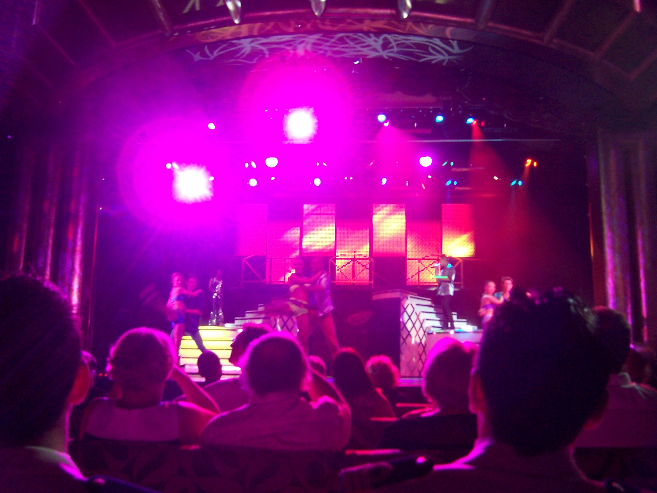 The evening show, Ice & Fire, was a triumph. Skaters, acrobats, dancers, singers, lasers, the works, all set to music we actually enjoyed. I should have recorded it, but thankfully, the ship loops all the shows on cabin TV, so we’ll be rewatching it at some point between naps and mango rations.
