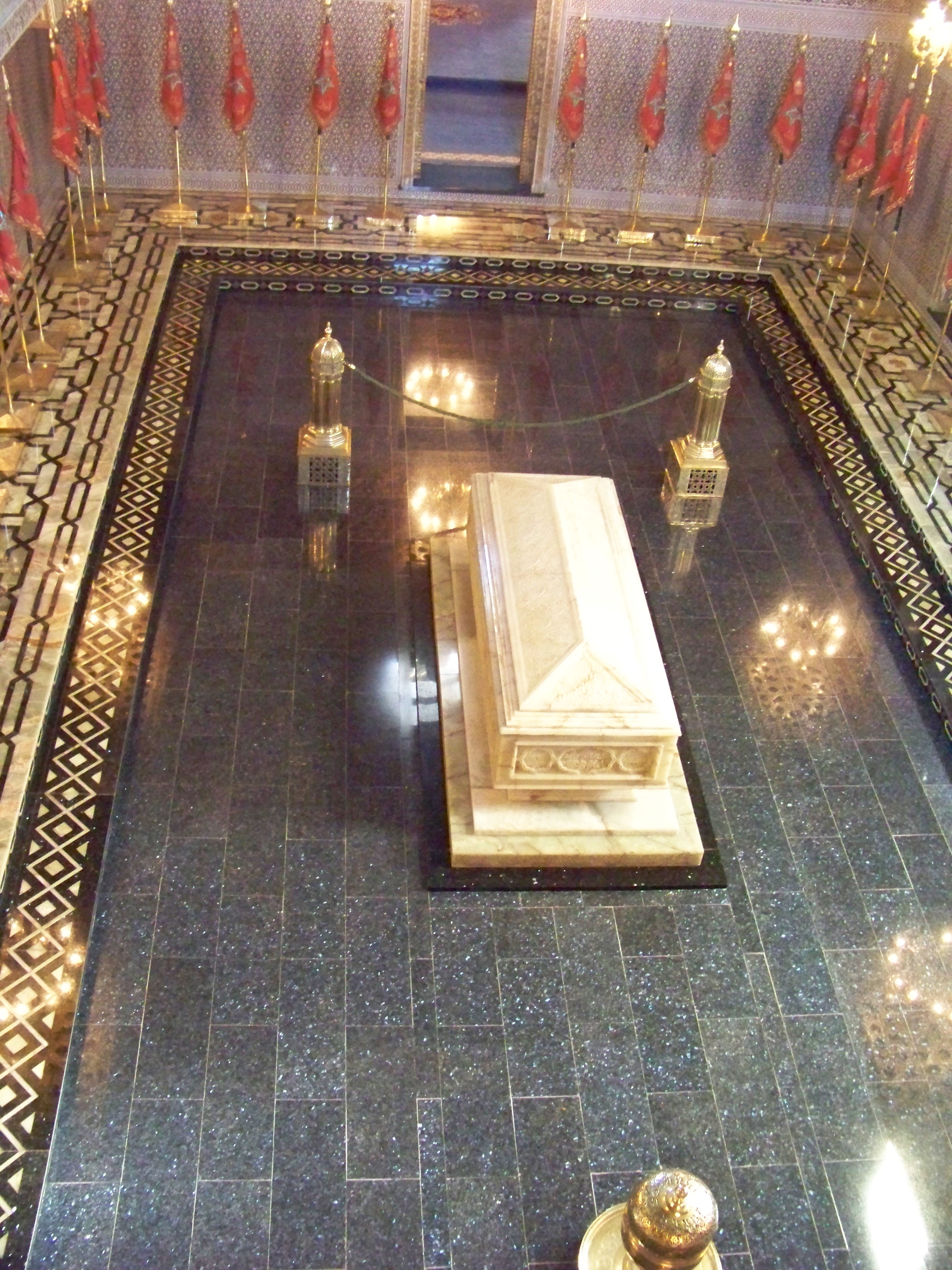 100_4649The Mausoleum of Mohammed V was next, far prettier and more dignified. Unfortunately, our visit was interrupted when an Islamic zealot accused our guide of disrespect for speaking too loudly to us, the “infidels.” She had to be restrained twice by a burly relative before calm was restored. It was a sobering reminder of how thin the line can be between tolerance and intolerance. If the world is ever to find peace, it will only be by celebrating our diversity rather than fighting it.