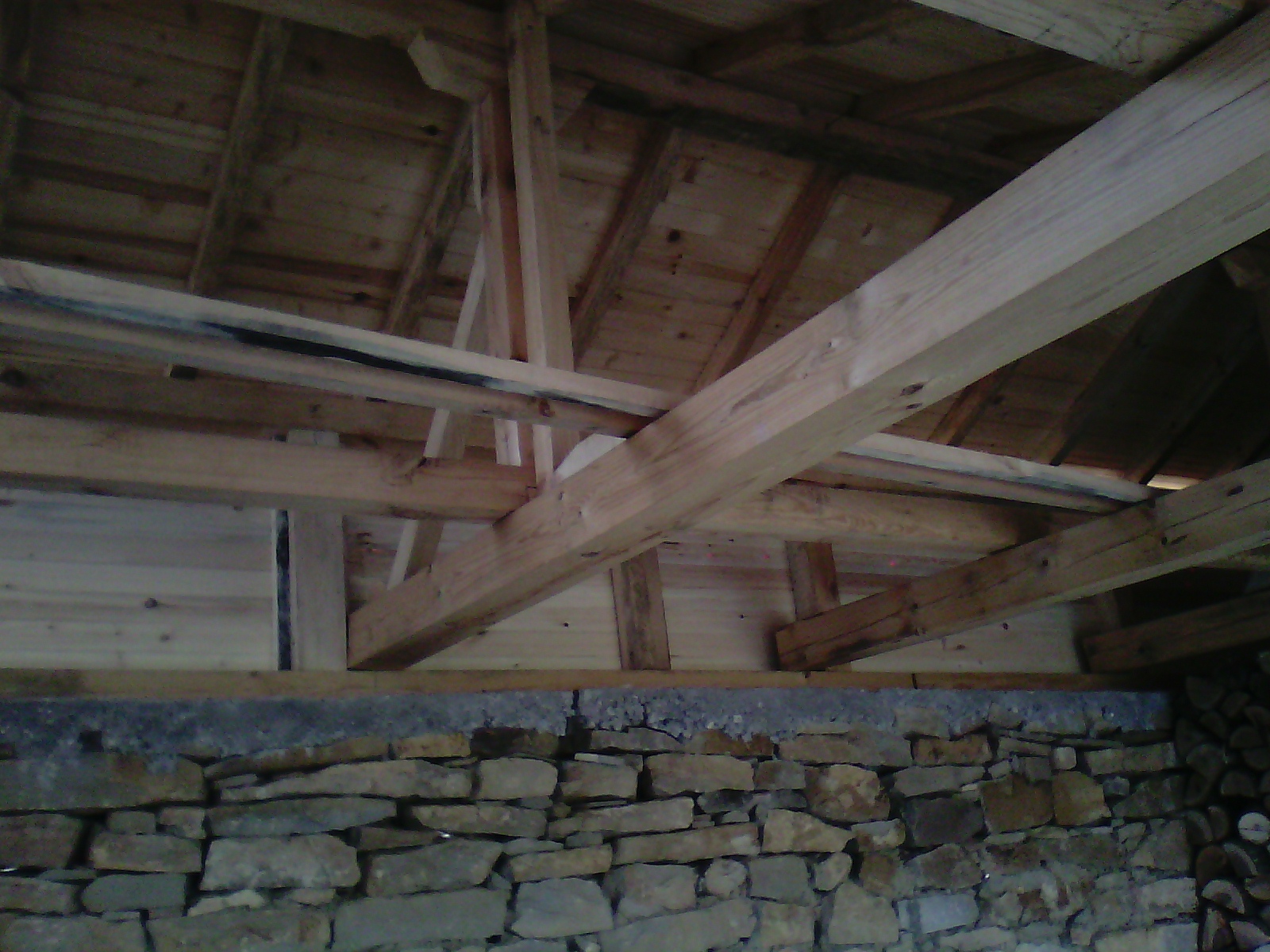 Back at the house, David and I decided today was the day to finally finish the wood store. The side section, with its odd angles and awkward scraps, kept us occupied for a while, but the back wall went up like a dream. In a rare flash of inspiration, we ran the wood horizontally instead of vertically, and suddenly the job looked rather professional.