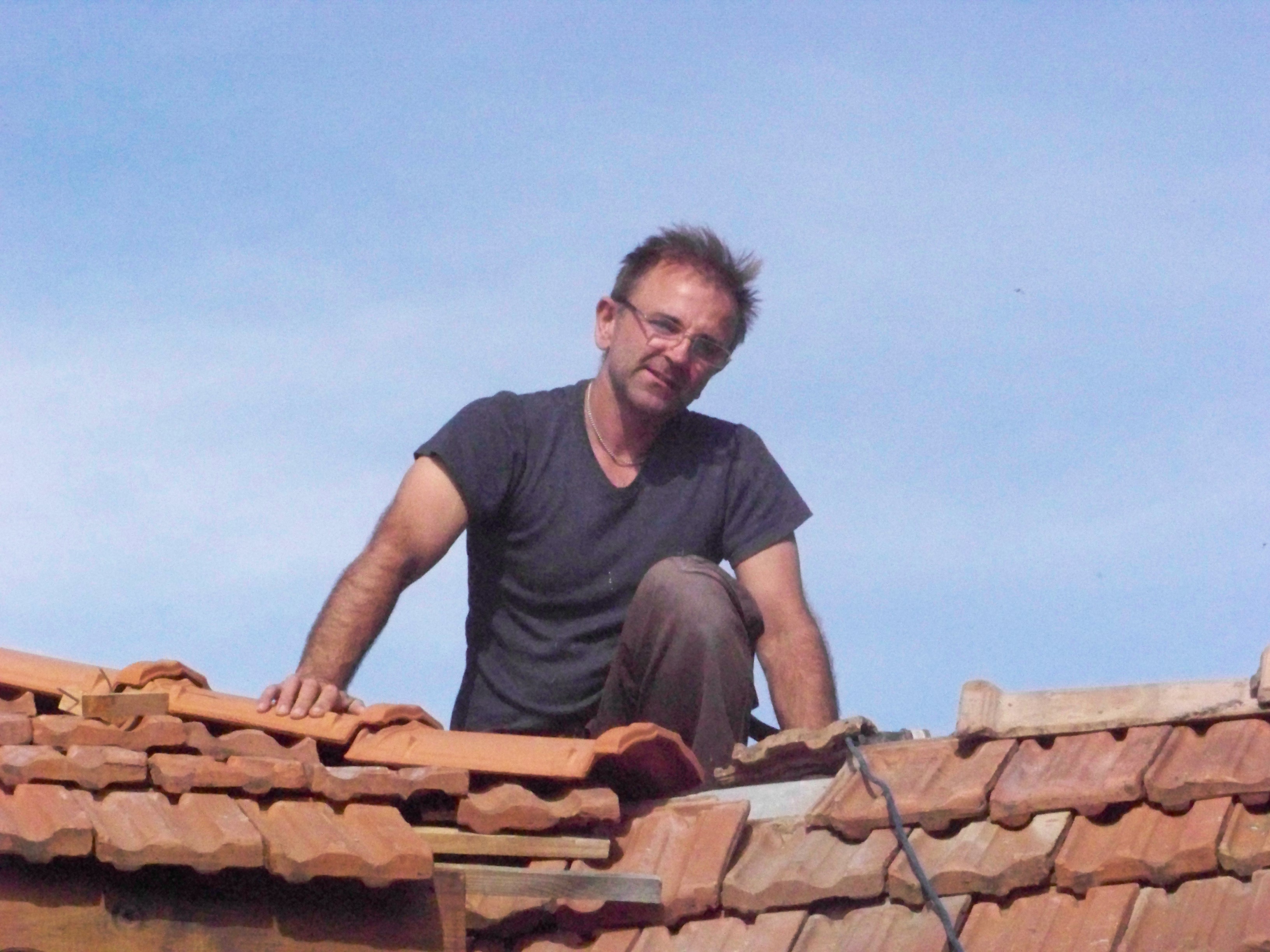 The day that followed was less glamorous but equally destructive, this time directed at our nerves. With both barns now looking respectable, we turned our sights to the front gate, a project left in a half-baked state years ago. Back when David first moved in, he’d hired local Bulgarians to do the work. Unfortunately, their efforts resembled a jigsaw puzzle where half the pieces were missing and the rest belonged to an entirely different set. Fascia boards were too short, tiles looked as though they’d been cut by a blindfolded toddler, and vital waterproof joins were as mythical as a restful night after a vindaloo. As for boxing in the joists? Let’s just say the memo clearly got lost in translation.