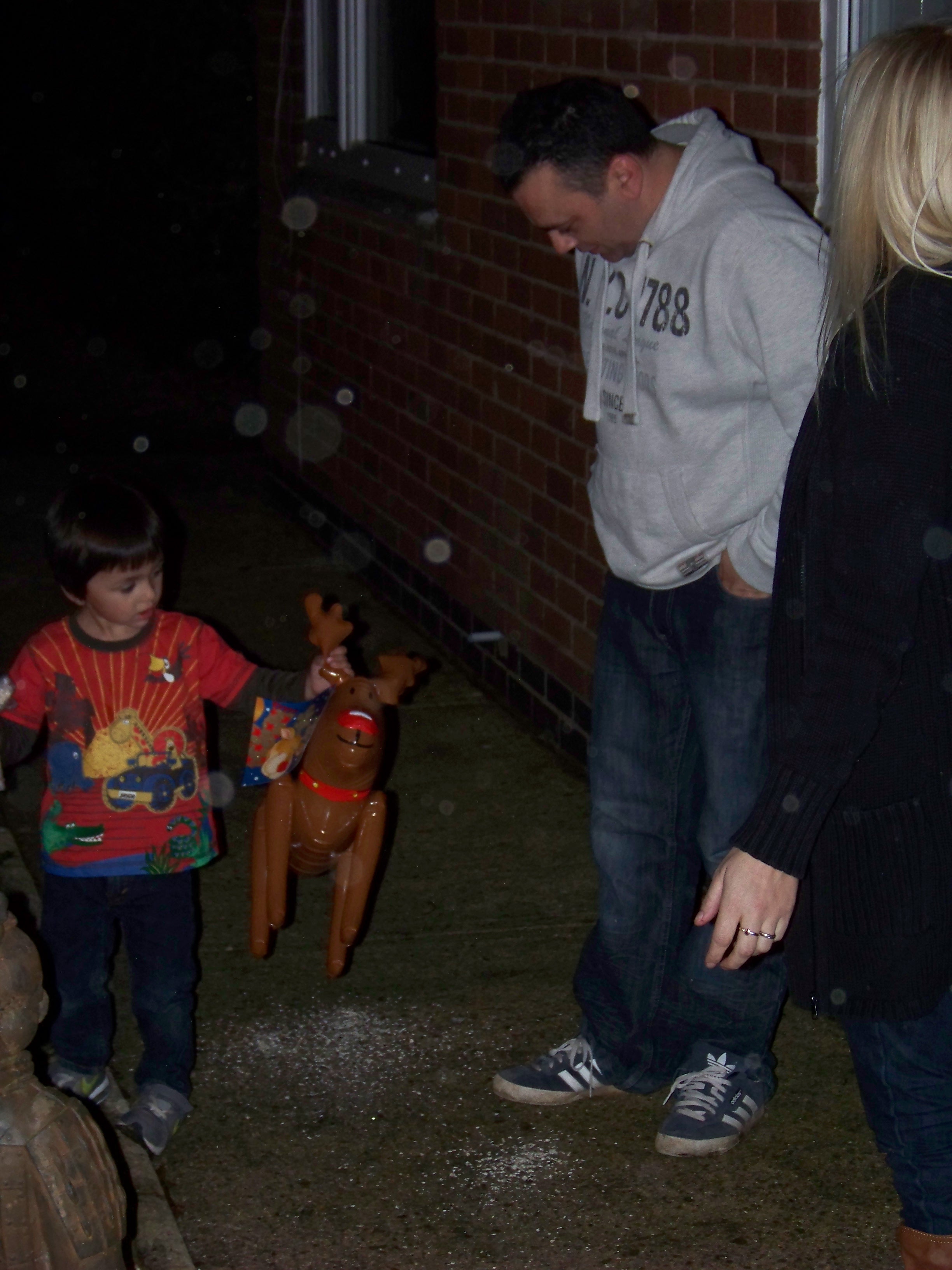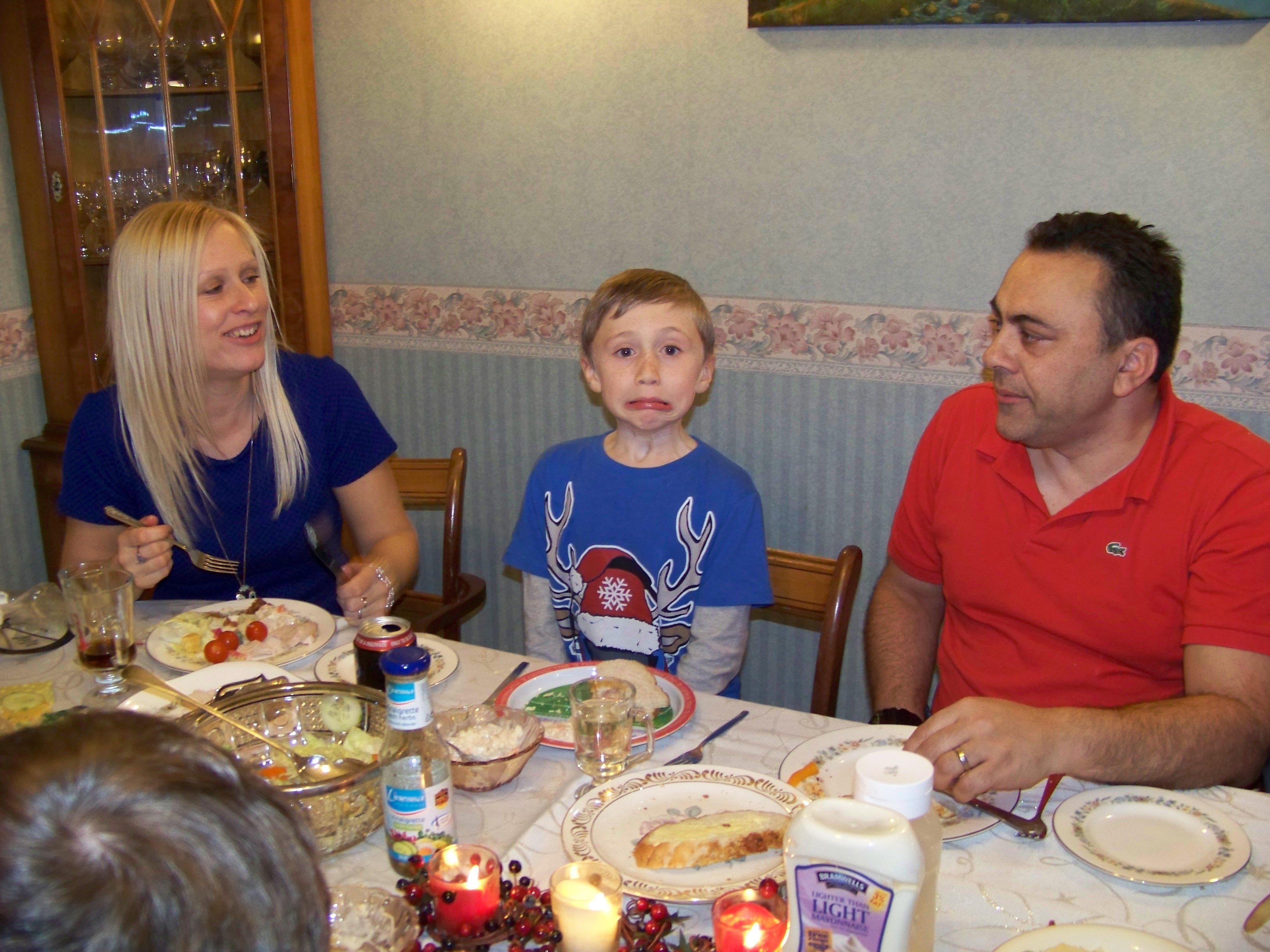After a game of Beetle and a bit of TV, Lucas and Ellis were surprisingly tucked up and fast asleep by 10 pm. The ‘grown-ups’ waited until around 11 pm before giving Santa a hand with arranging presents under the tree, then headed off to bed themselves. Sometime in the night, Jamie appeared in his bed in the study, and the ‘young ‘uns’ blissfully slept on until 7:30 am!