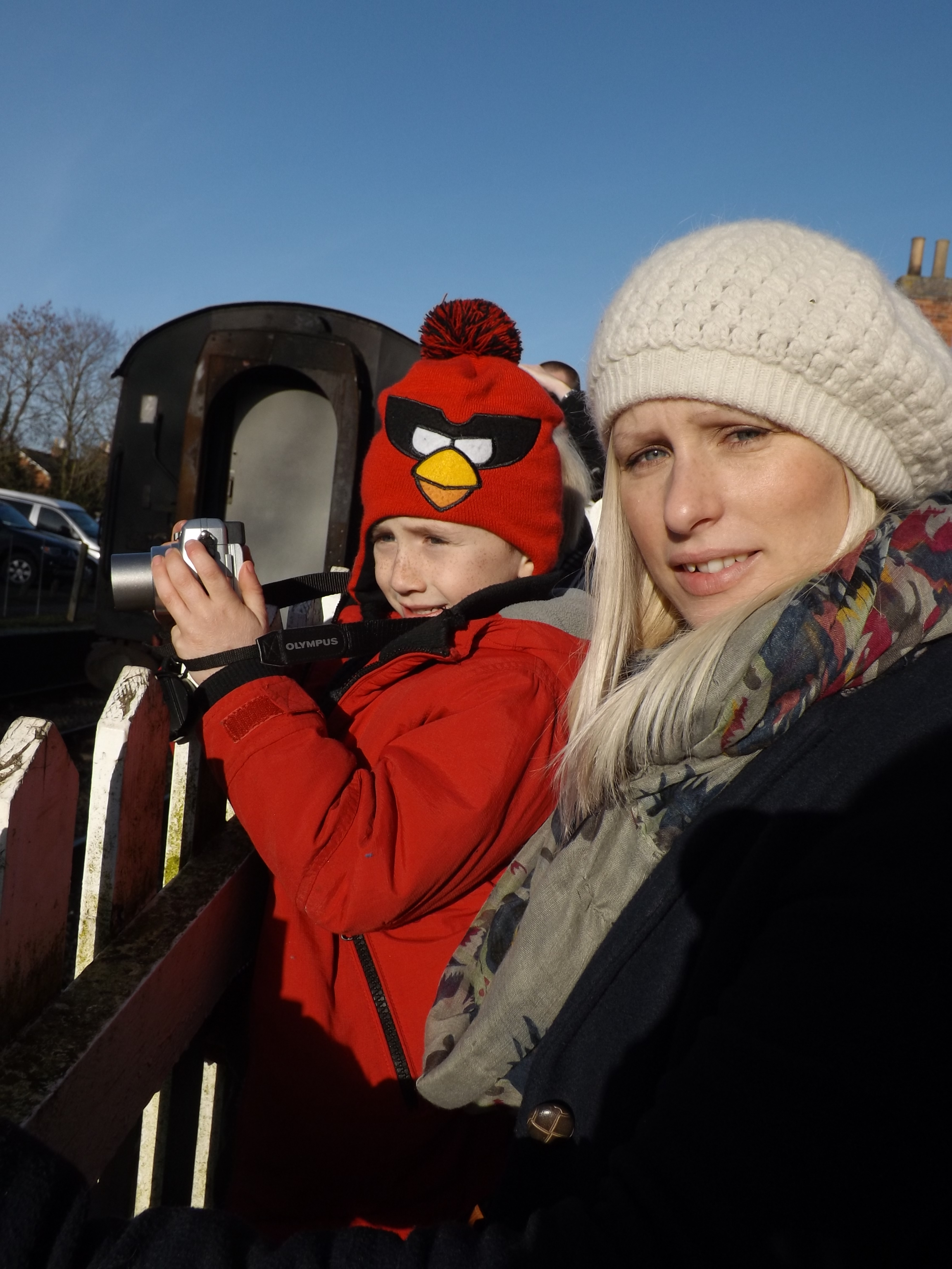 The next day, while Jamie was at work and Nan took a well-earned rest watching sports, the rest of us headed to Shackerstone Station to catch the “Mince Pie Express” on the Battlefield Line to Shenton. We aimed for the 11:15 am train and, by some luck, managed to board despite a detour by the SatNav to the wrong side of the tracks. The eagle-eyed station master spotted us hurrying down the lane and held the train until we made it on board.