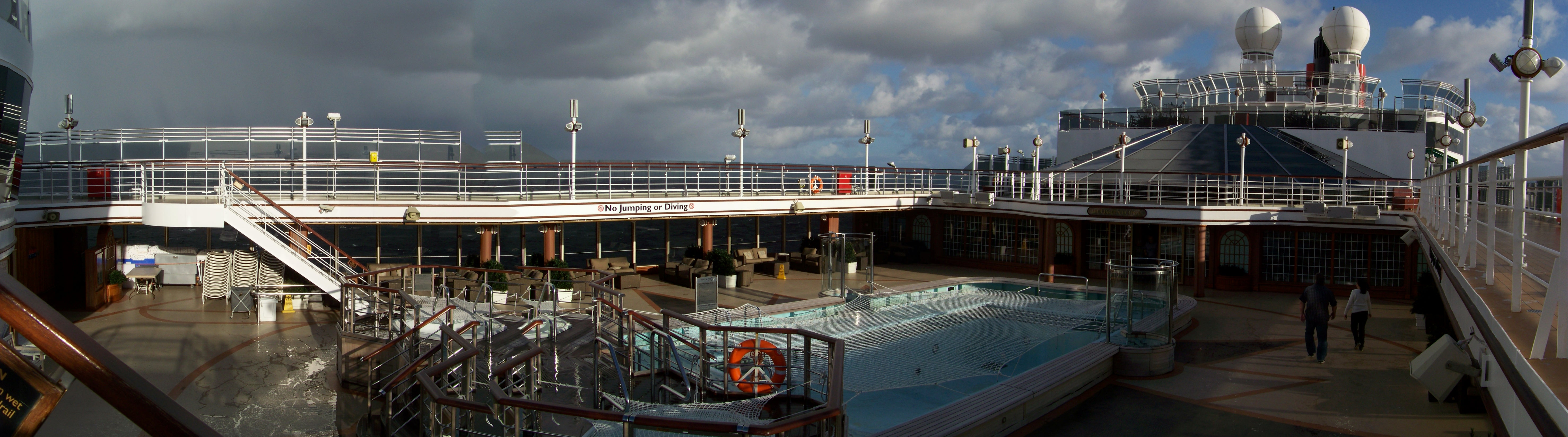 We had a brisk walk around a sunny deck, a long conversation with a lady from Sheffield and then a look around the shops (again), discovering that the dollars we had brought on board were of no use as everything went onto account. Following that, we strolled through the art gallery, feigning the airs of seasoned collectors as we commented on the exhibits. I may have even dropped a casual remark about how $13,500 was a reasonable price for such an impressive piece of art, though I did wonder aloud where we would put it, as our wall space was rapidly dwindling!100_5254Sue attended a lecture on Tanzanite jewellery that sounded utterly fascinating; thankfully, it wasn’t quite enticing enough to convince her to part with any cash! Meanwhile, I found myself captivated by a fencing class for a while and then tested my trivia prowess with a few quiz questions in the Golden Lion pub before my stomach finally won the argument and beckoned me to lunch.