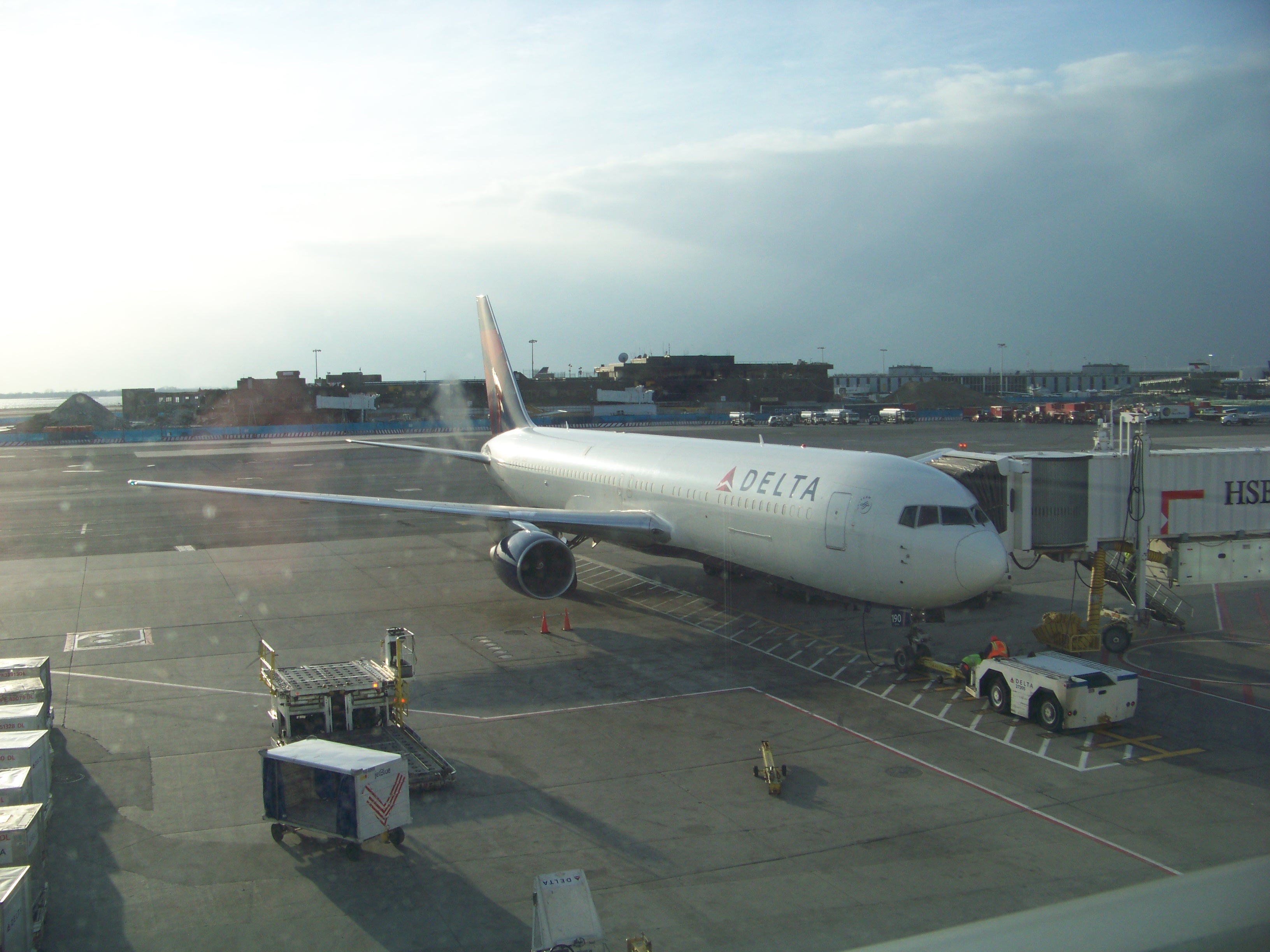 About half an hour later, despite the heavy midtown traffic that could only be described as chaotic, we were hauling our cases into JFK in blizzard conditions. Having already checked in online, I printed our boarding cards at one of the terminals and then dropped our suitcases off at the Delta Desk. Easy peasy, until we hit the security and passport control queues.