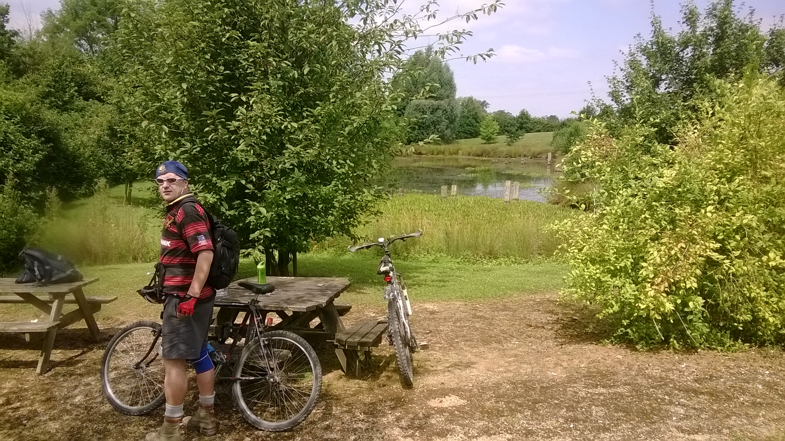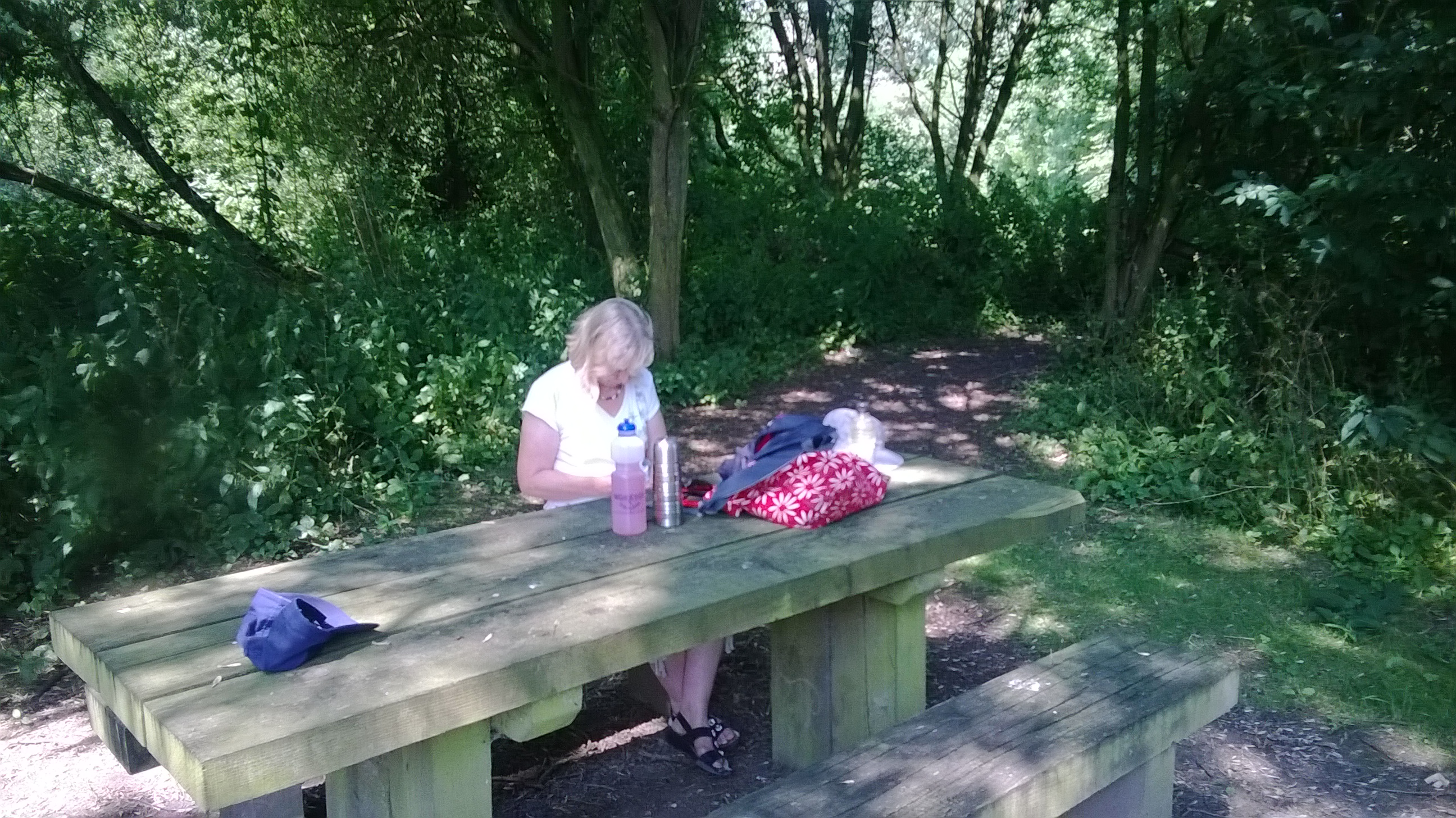 The following Wednesday, Sue and I hopped on our bikes and cycled along the Brampton Valley Way for a picnic. We made it as far as Arthingworth Road before stopping to eat, it was a scorching hot day. On the return journey, we took a well-earned break at Waterloo Lakes for an ice cream and a glass of cider. I’ll let you guess who had which!