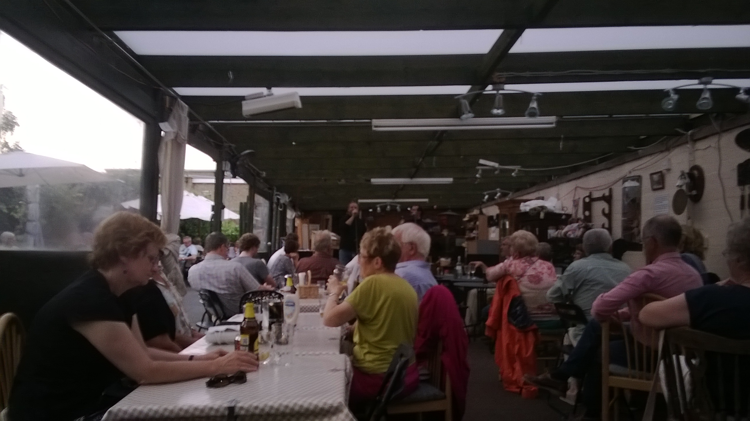 That Saturday, Sue and I met up with Jim and Brigitte at Joules for a BBQ and a Simon and Garfunkel evening. Fortunately, we had pre-booked our tickets, and I managed to add Jim and Brigitte to the list, otherwise, they’d have been sorely disappointed. The place was packed when we arrived, and many people without tickets were turned away. It just goes to show how enduringly popular their music is, especially on a warm summer evening with the added draw of a BBQ. It turned out to be a brilliant night—great music and even better company!