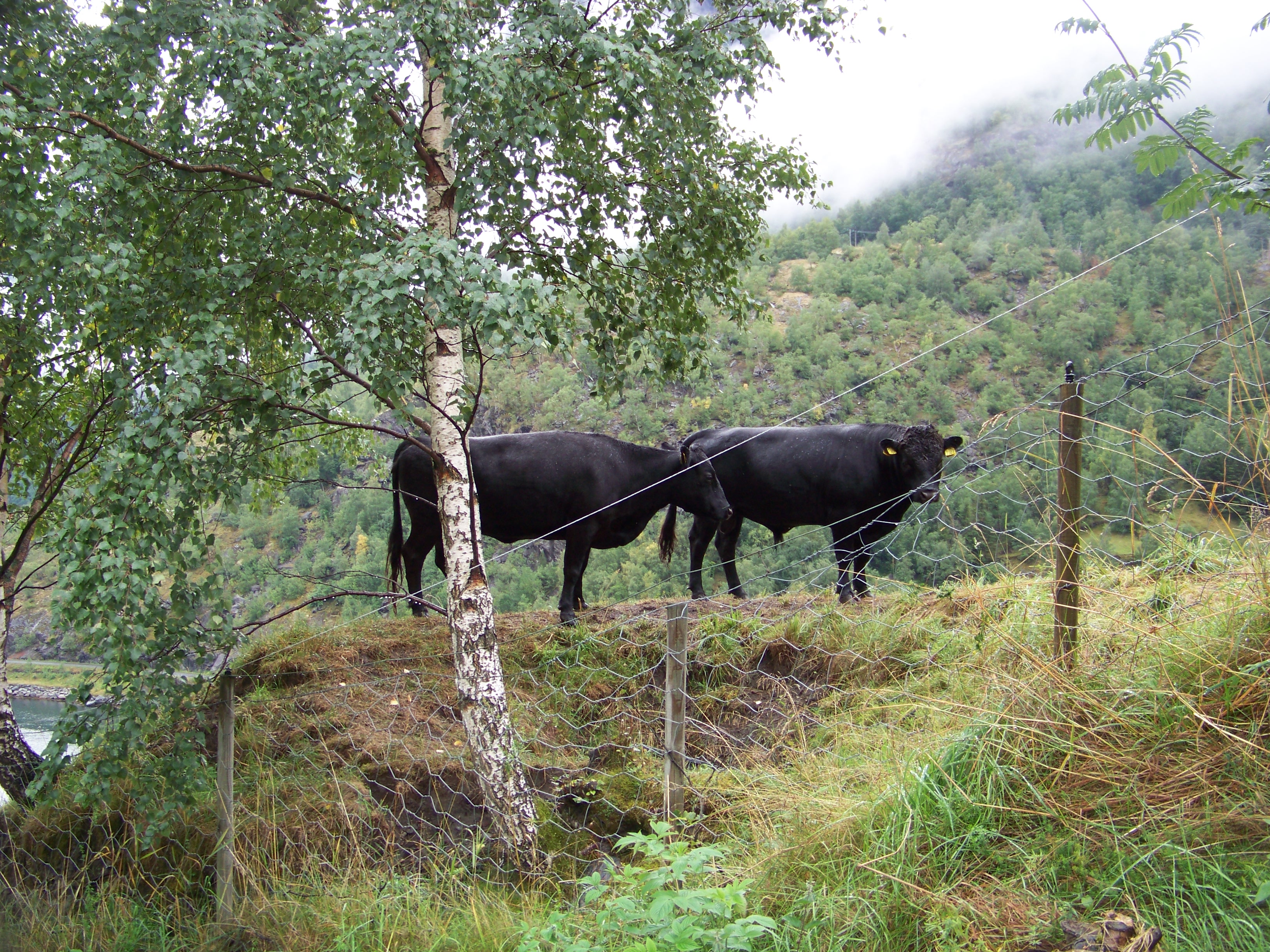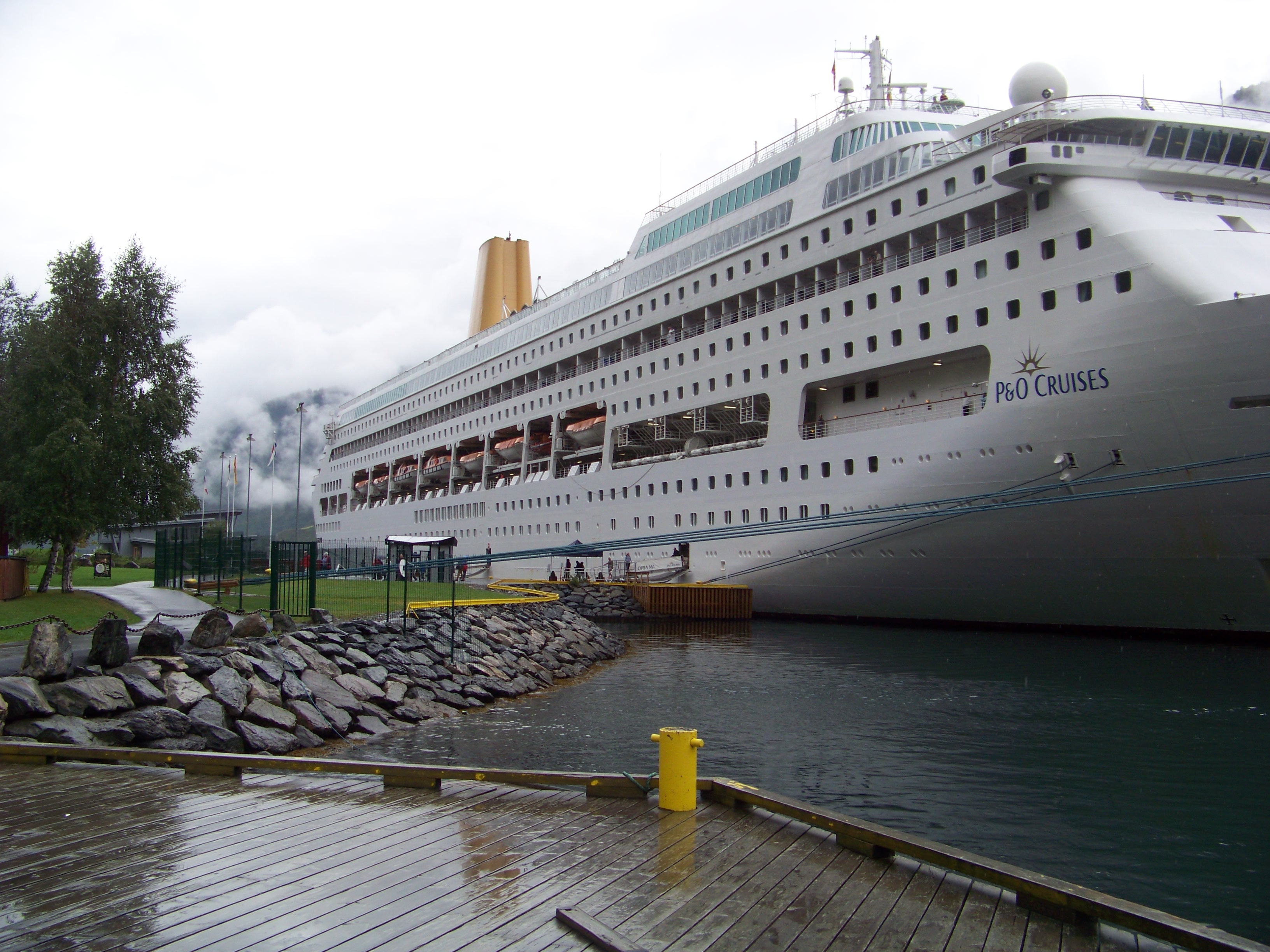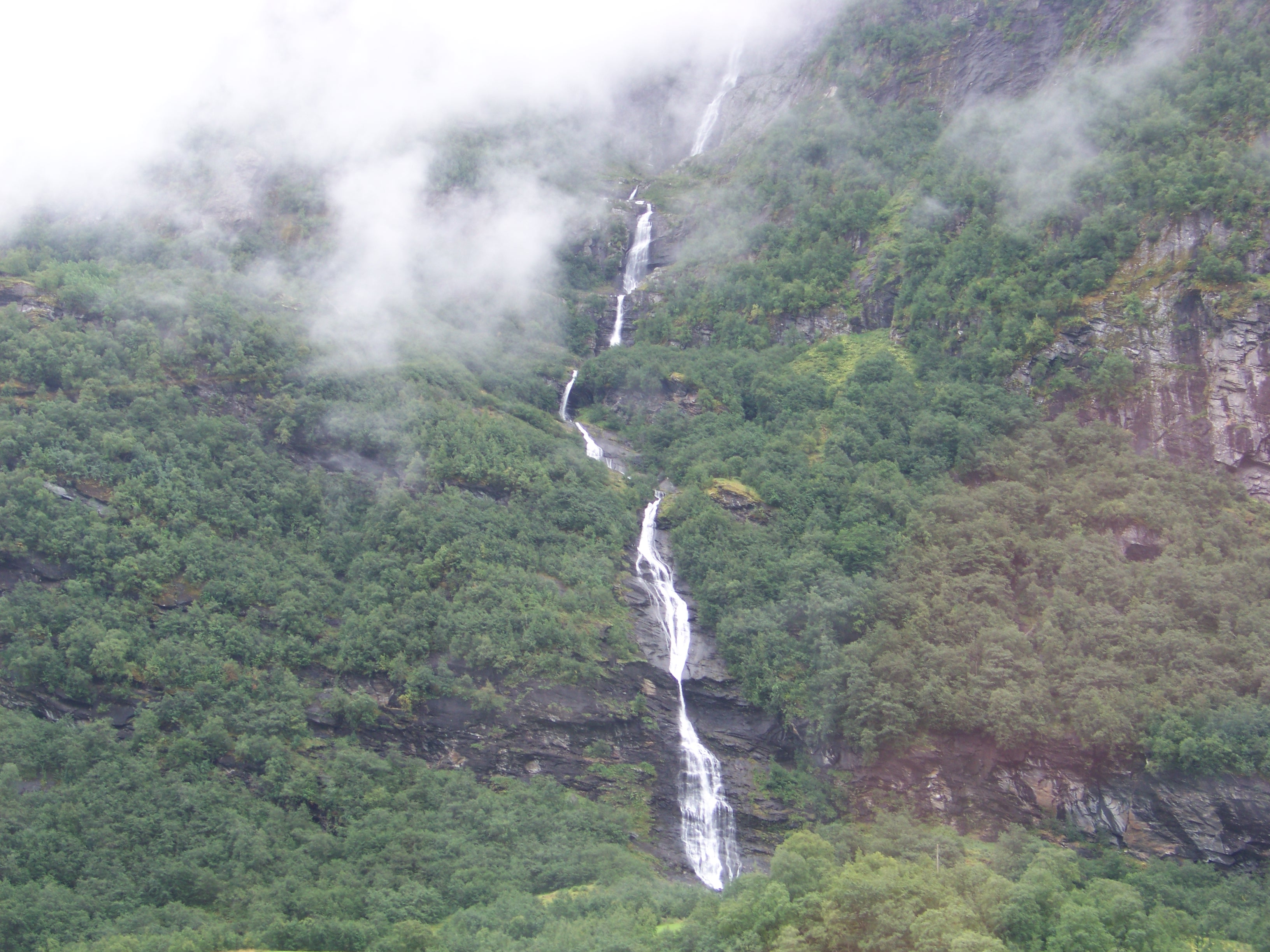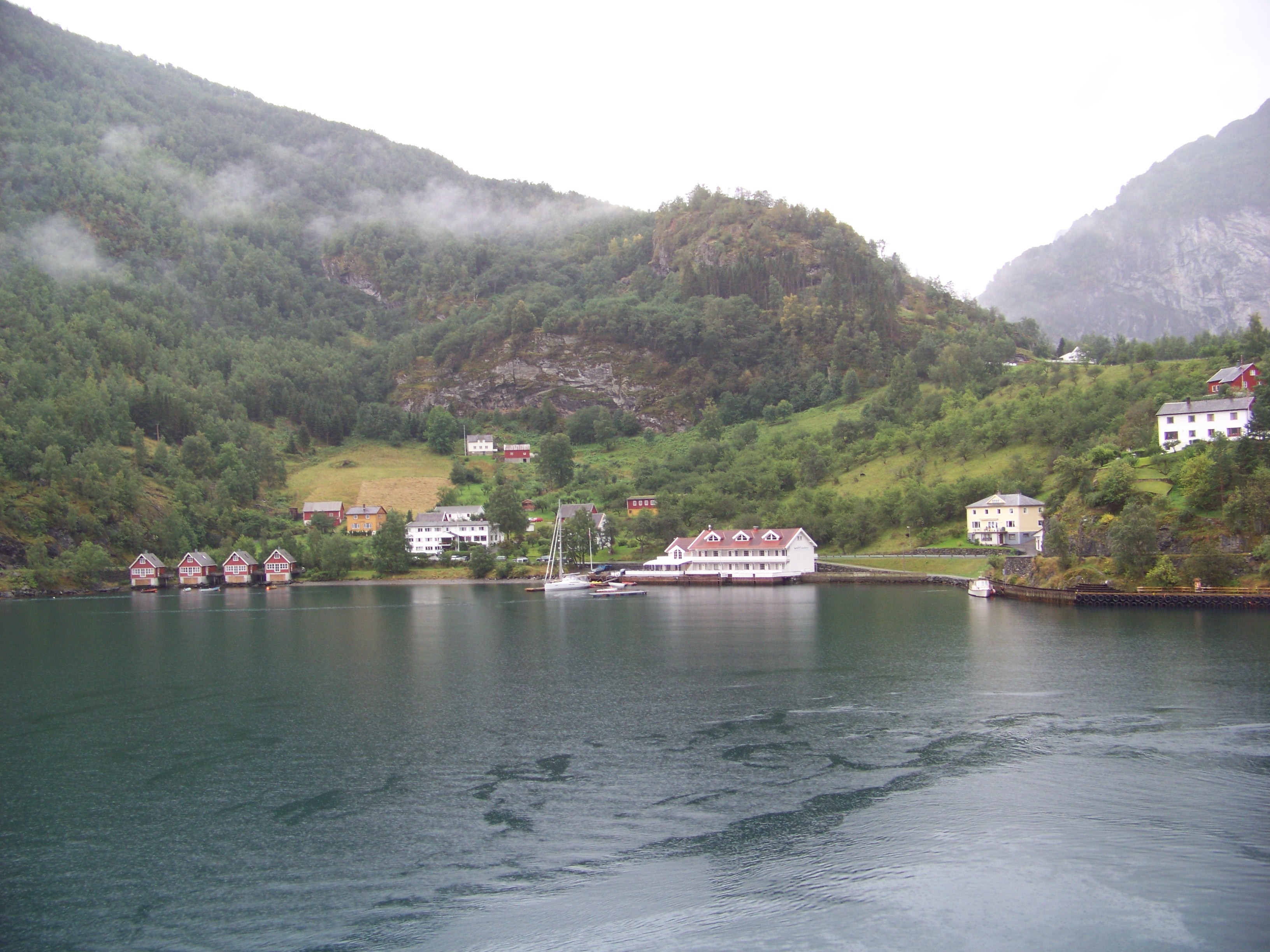 The previous evening, we’d been informed that the ship would enter the fjord leading to Flam at around 1 am, with an open invitation to go on deck and witness the breathtaking scenery. We woke at 7 am, and through the breakfast restaurant’s windows, we could indeed see the towering cliffs of the fjord, and rain!