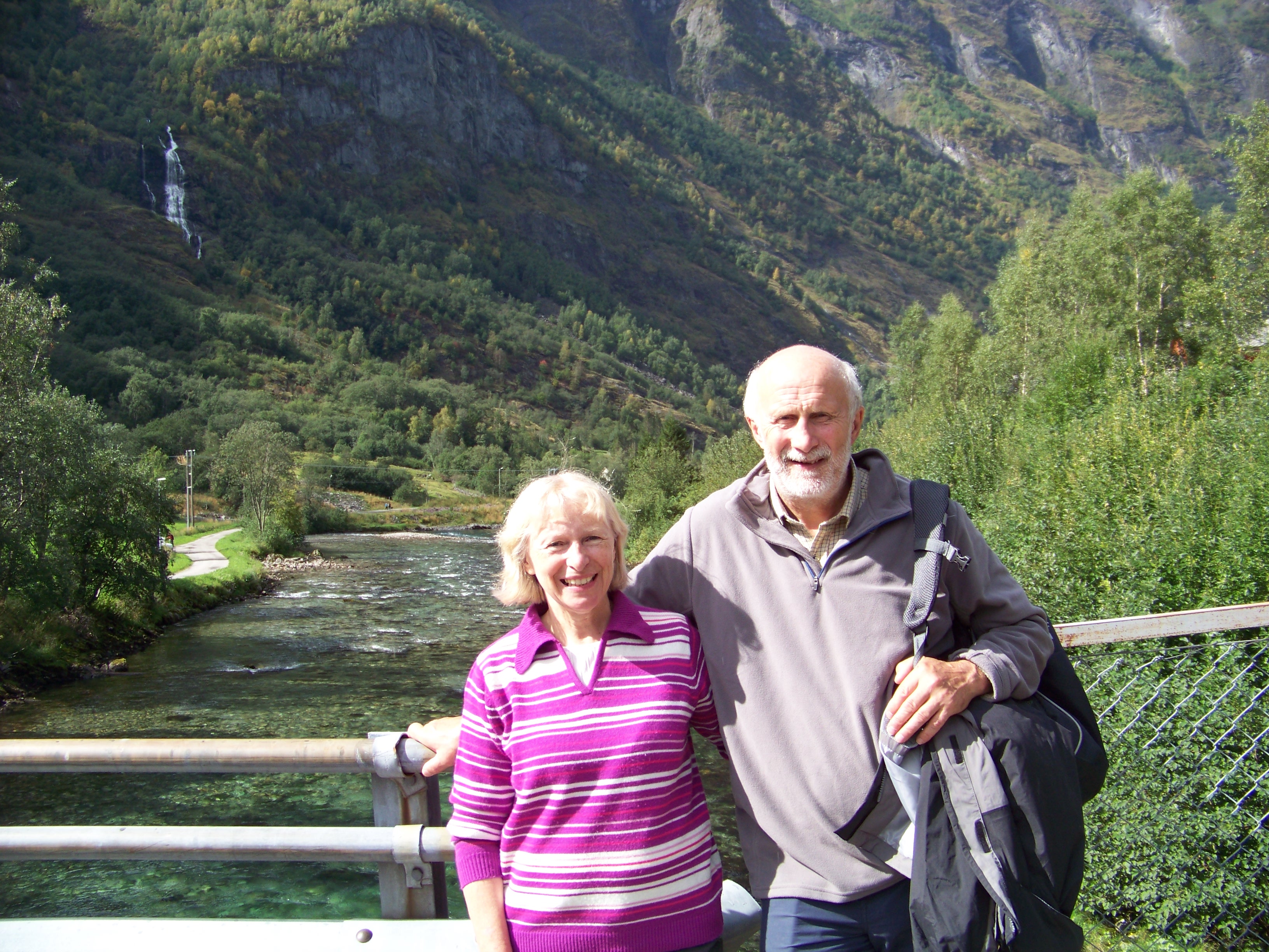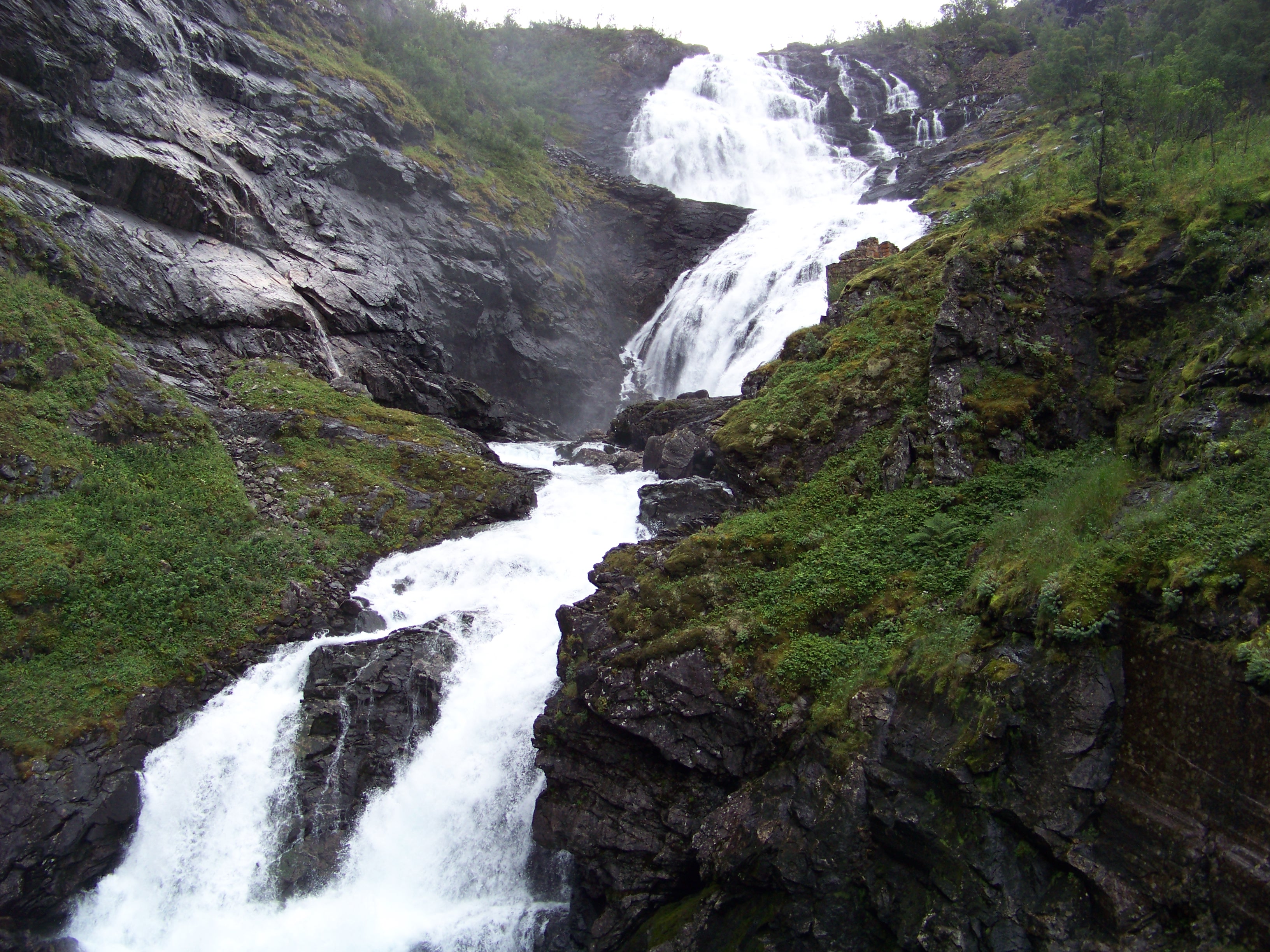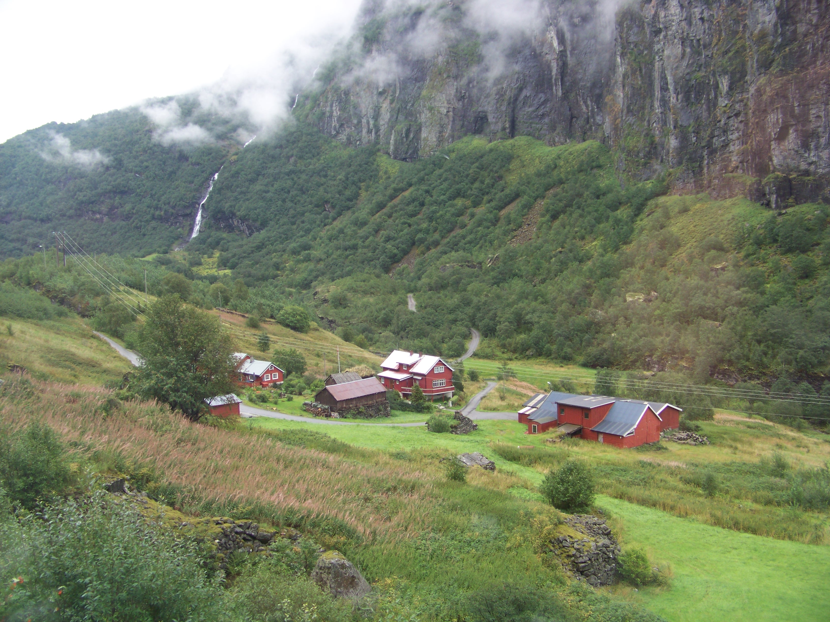 Having not eaten in several hours, we quickly boarded the ship, found a restaurant, and scoffed down lunch. For our afternoon calorie-burning activity, we had decided in the morning to walk to a waterfall a couple of kilometres outside of Flam. During the morning’s sortie, we had discovered the path that led to the falls, so we took it again after disembarking for the second time.