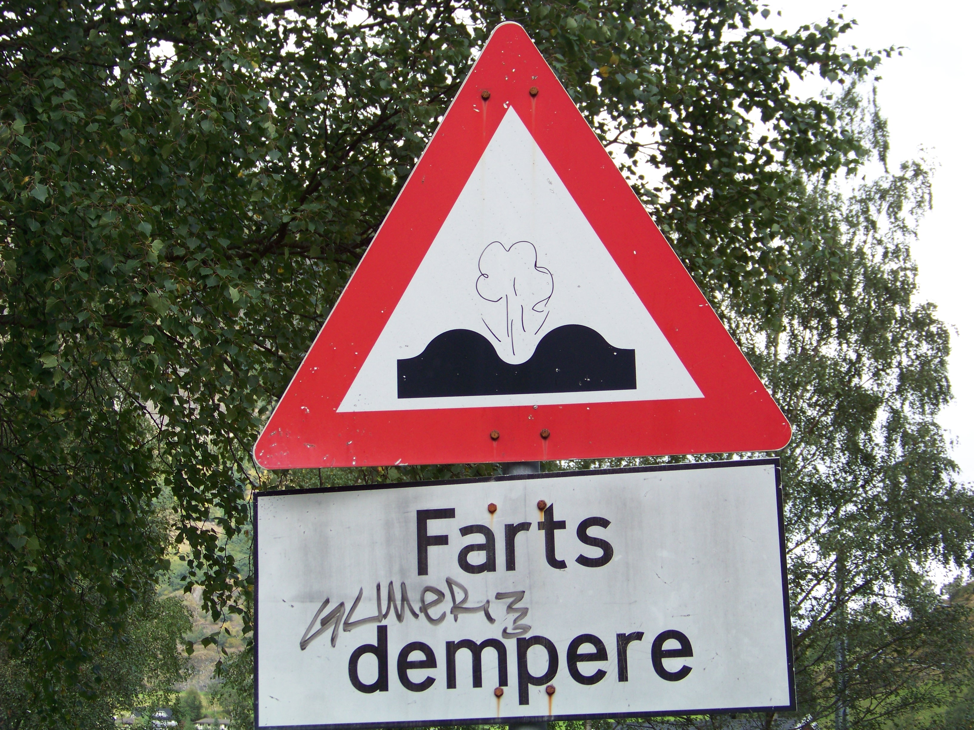 journey, pausing briefly to snigger at an amusingly vandalised road sign.