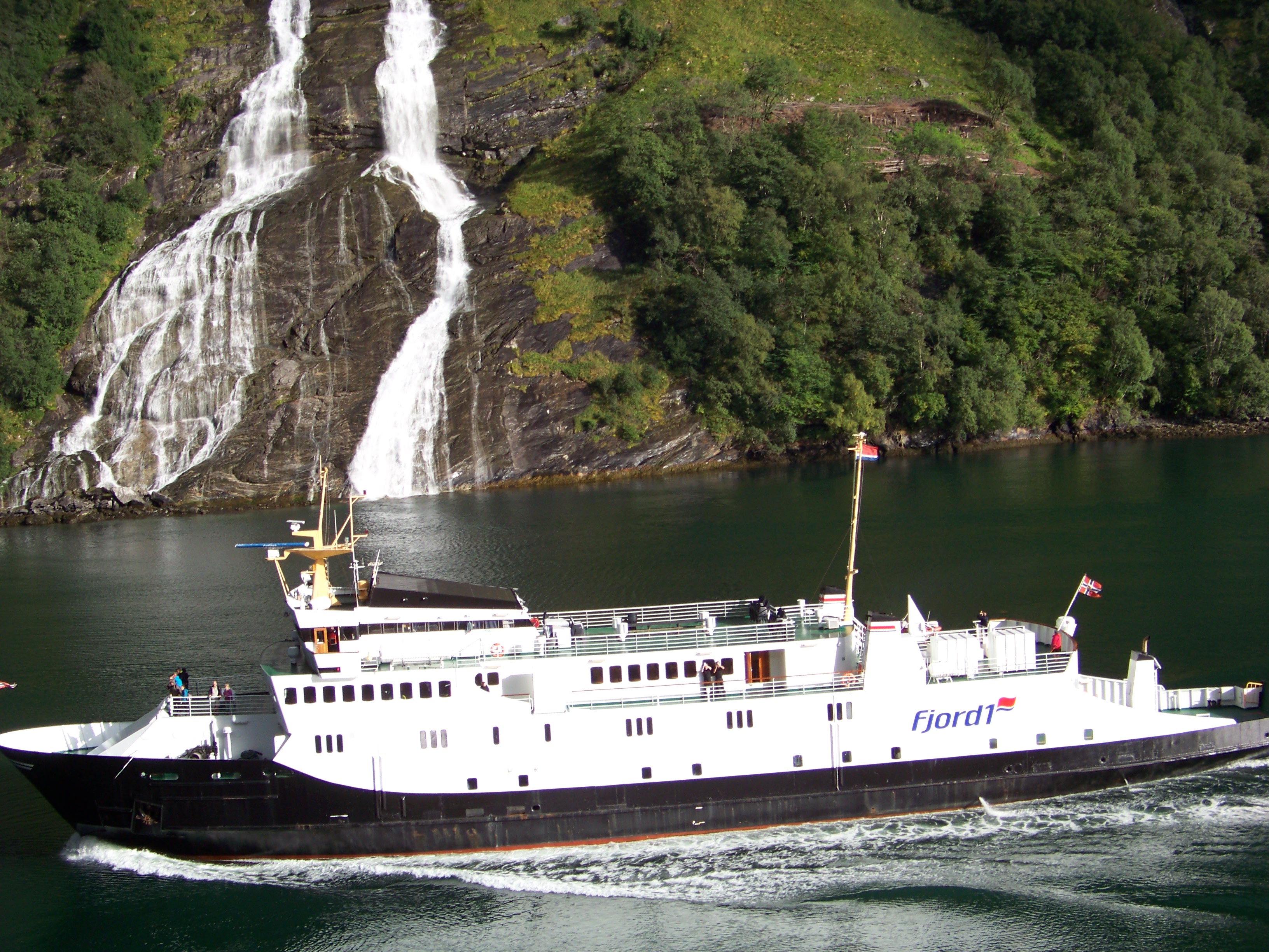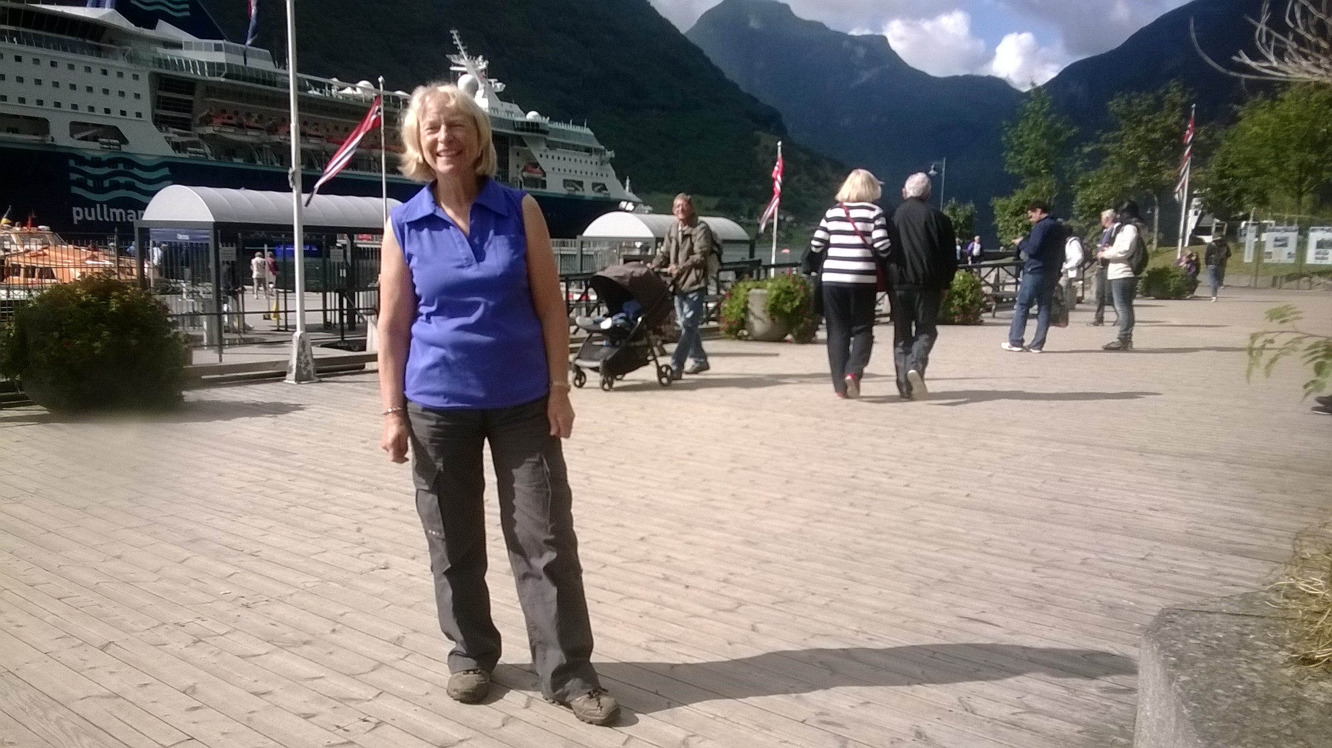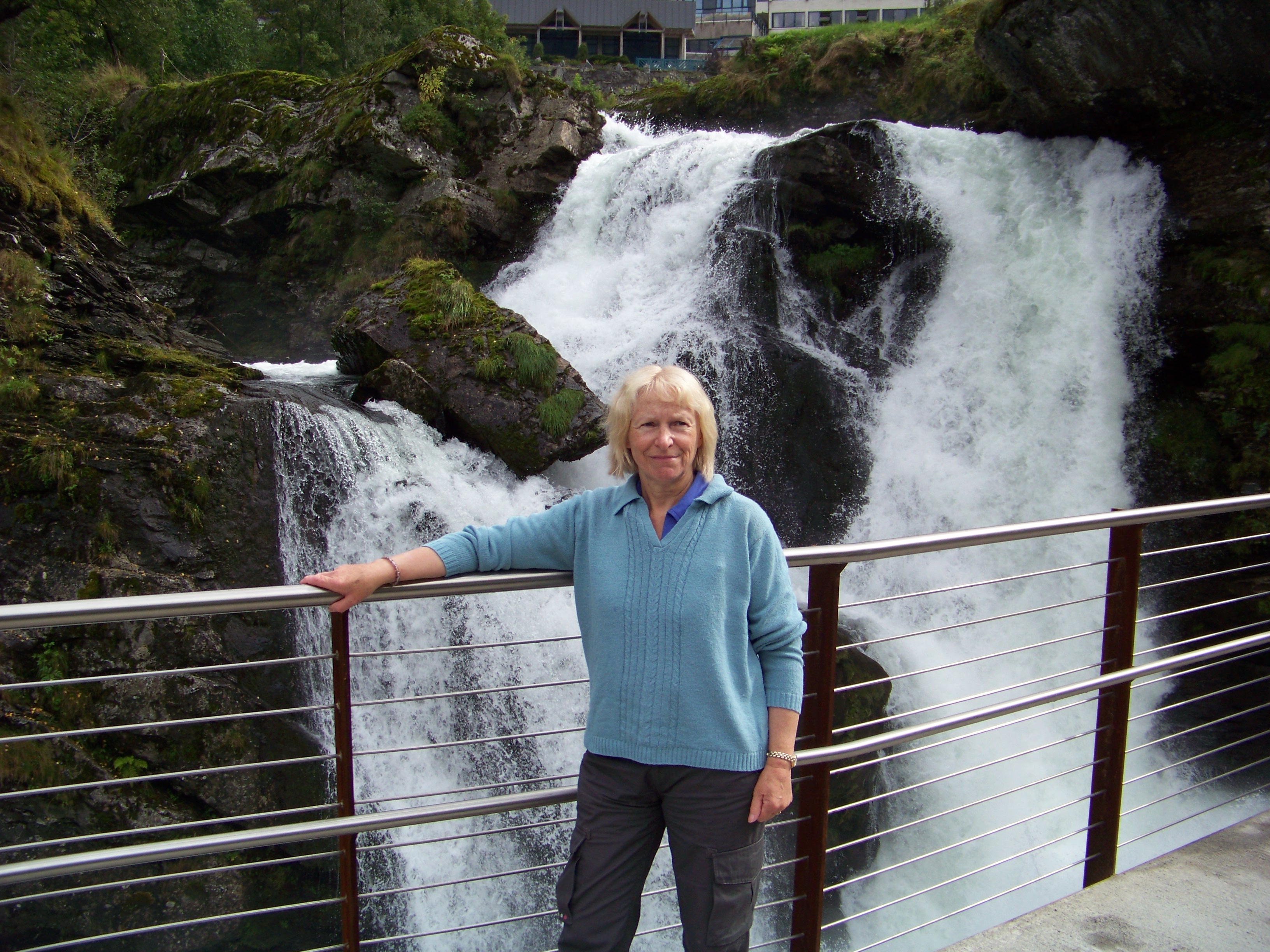 Later, Sue headed to the stern to soak up the sail-away music and lingered to watch the breathtaking scenery slip by. Over the intercom, the captain announced a unique manoeuvre: as we approached the famous Seven Sisters waterfalls, he planned to stop the ship in the fjord, rotate it a full 360 degrees, giving everyone a prime view of both the Sisters and the towering waterfall on the opposite shore. Even better, a rescue craft would be launched to film the spectacle, a first for the Oriana!