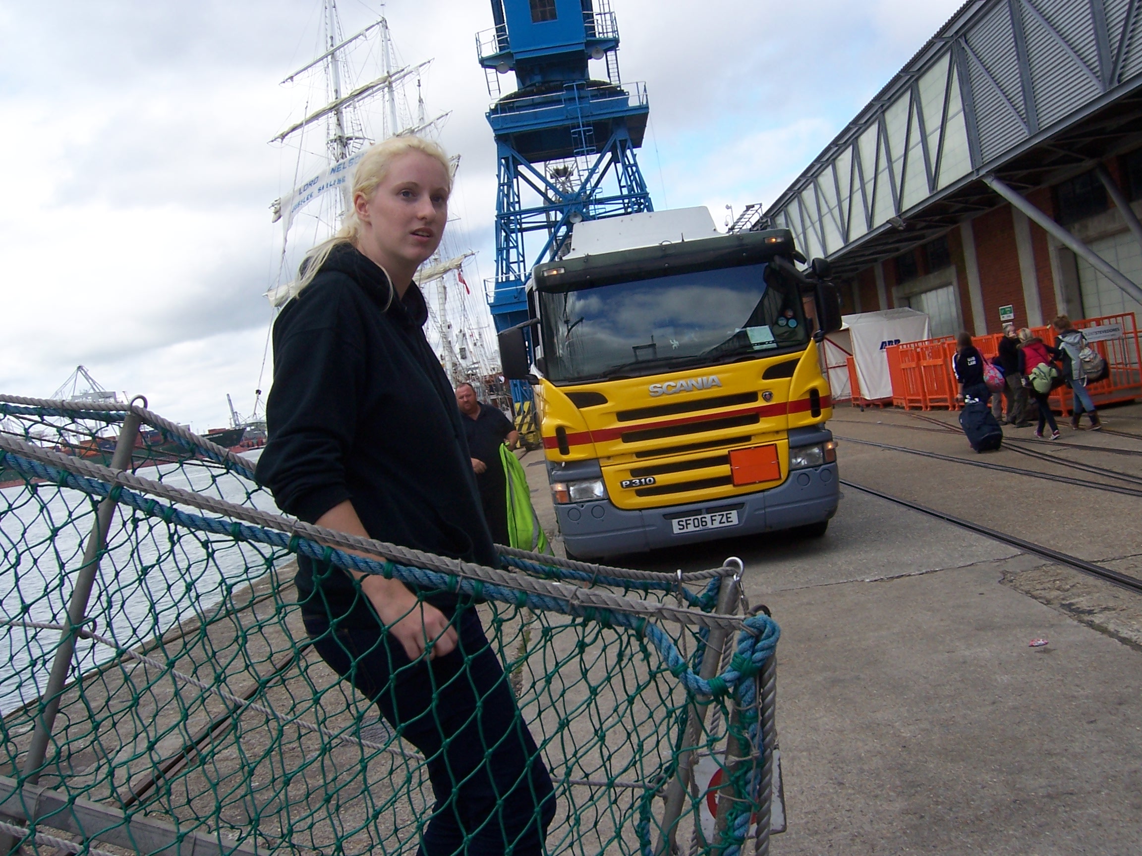 From there, we continued to Southampton to meet the MS ‘Tenacious’ and Sarah. By the time we arrived, the ship had already docked, and the crew was busy getting it ship-shape for its next trip. Sarah had taken the helm on the final leg of the journey and was now coiling ropes and engaging in various other nautical tasks while we stood on the quay, snapping photos.