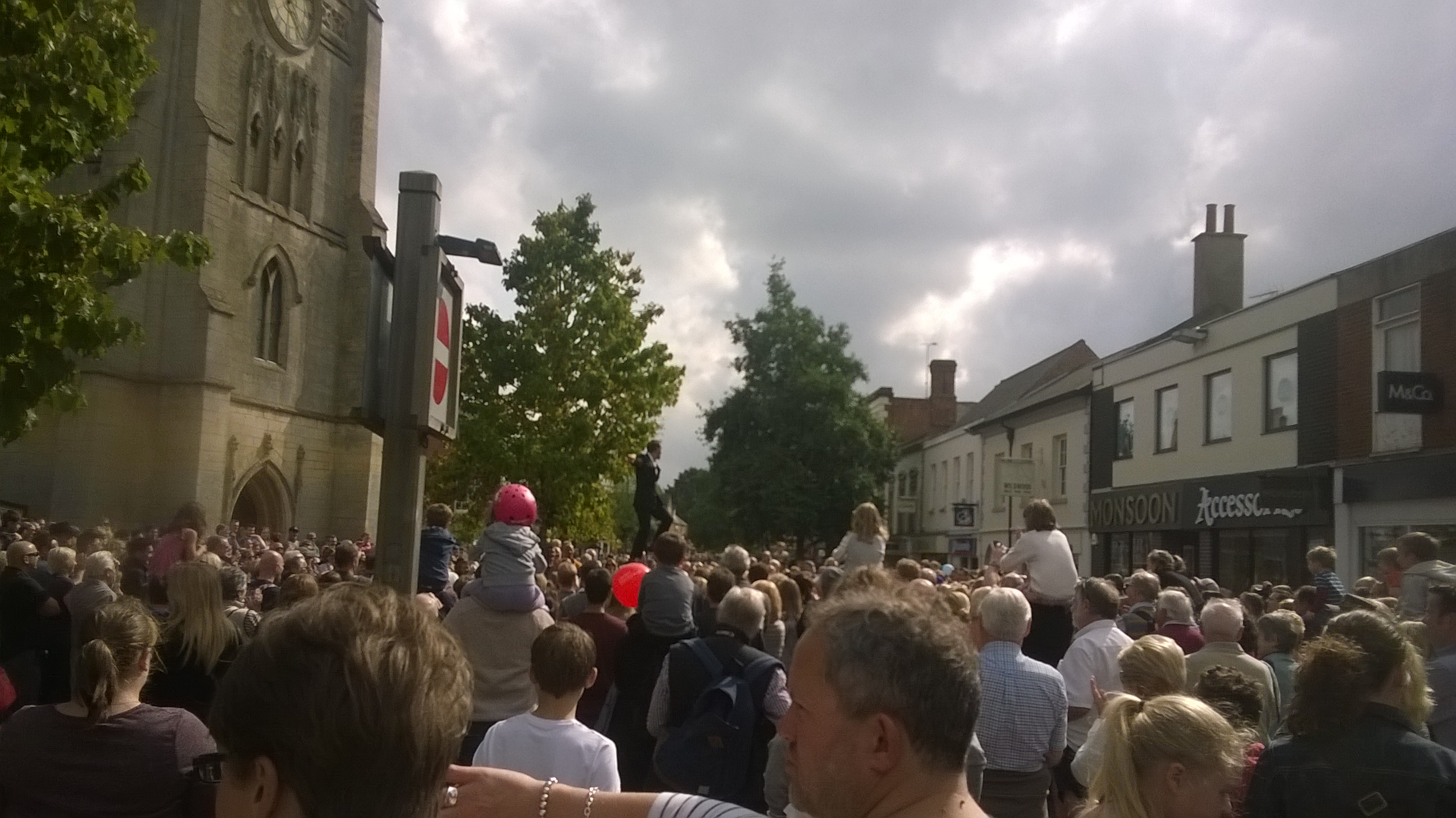 Once we arrived in the Square, a rugby friend spotted me for a chat. After just a couple of minutes, I looked around to check on Nan, and, not surprisingly, she had vanished. Over an hour later and two transects of the High Street, I finally found her, completely engrossed in a unicyclist on a ridiculously tall machine. Now, you’d think it would be difficult to lose an 86-year-old sitting on a mobility scooter on a straight road, even within a large crowd. The answer is: Not a bit of it, if they’re Welsh, from Yorkshire, and possess the attention span of a goldfish.