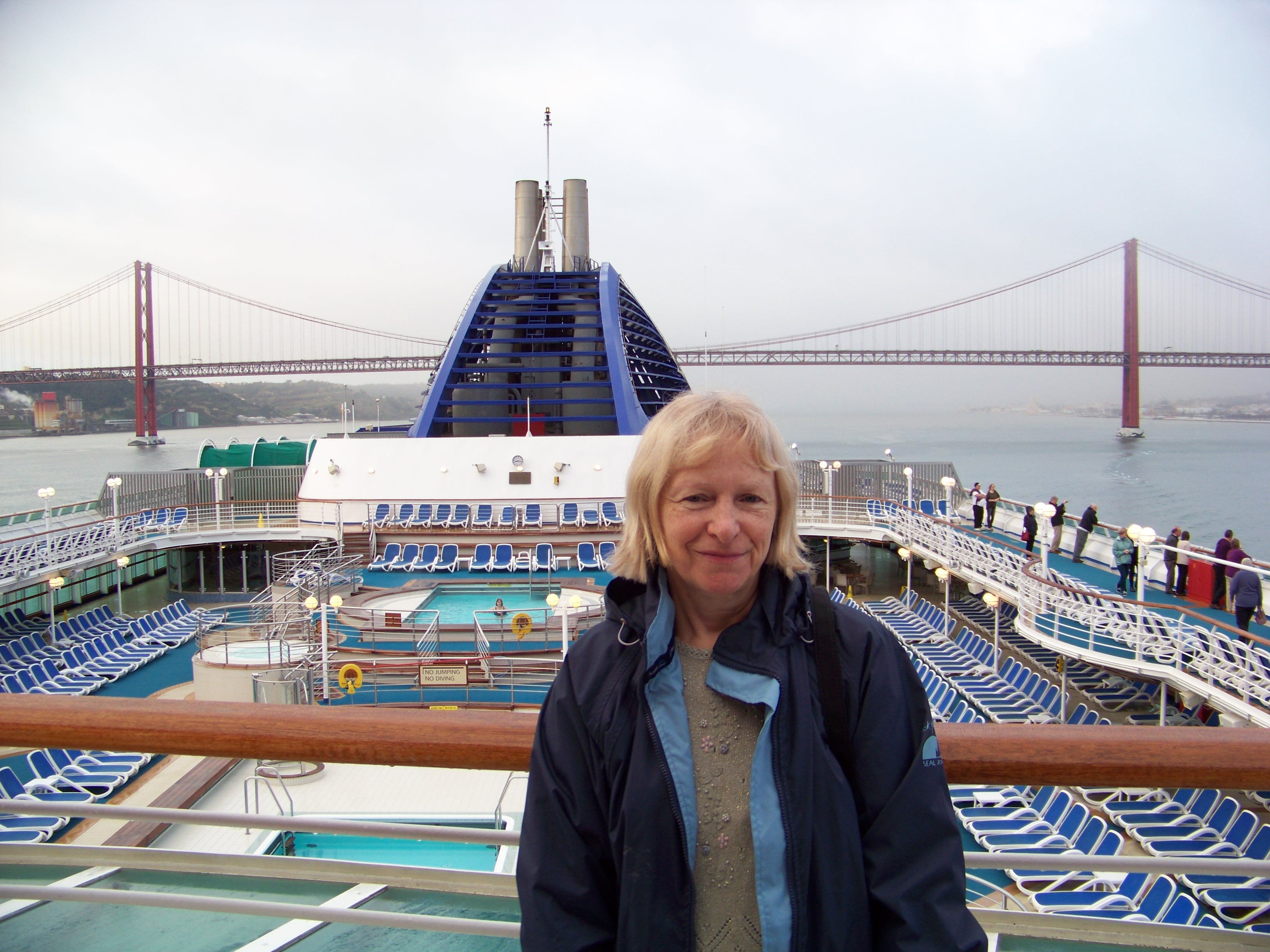 Before long, my eyes grew heavy, so I returned to our cabin to recharge my batteries, clearly depleted after five hours of sightseeing. Sue, hardened by years of retail therapy, went up on deck to watch the ship depart and then joined in the fun at the leaving party aft. Afterwards, she did some more embroidery in the Atrium before coming back to the cabin, waking me up in the process, and promptly falling asleep herself. I picked up my book once again.
