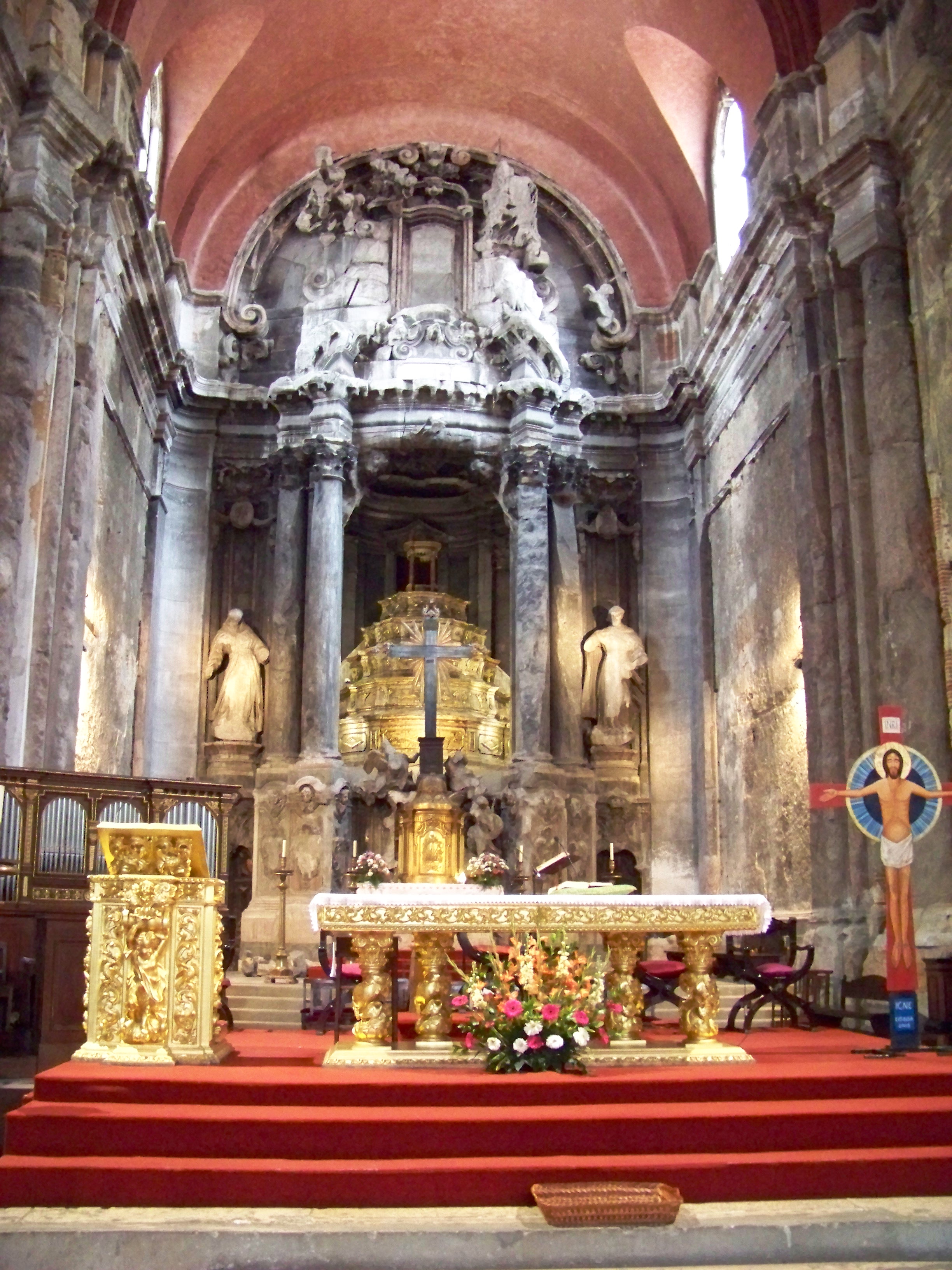 We returned to the ship via the Cathedral and a short stretch of the old castle walls, arriving just as some of the tour buses returned. Lunch was in the Jardine, after which we retired to the Atrium, Sue with her needlework and me with my book.