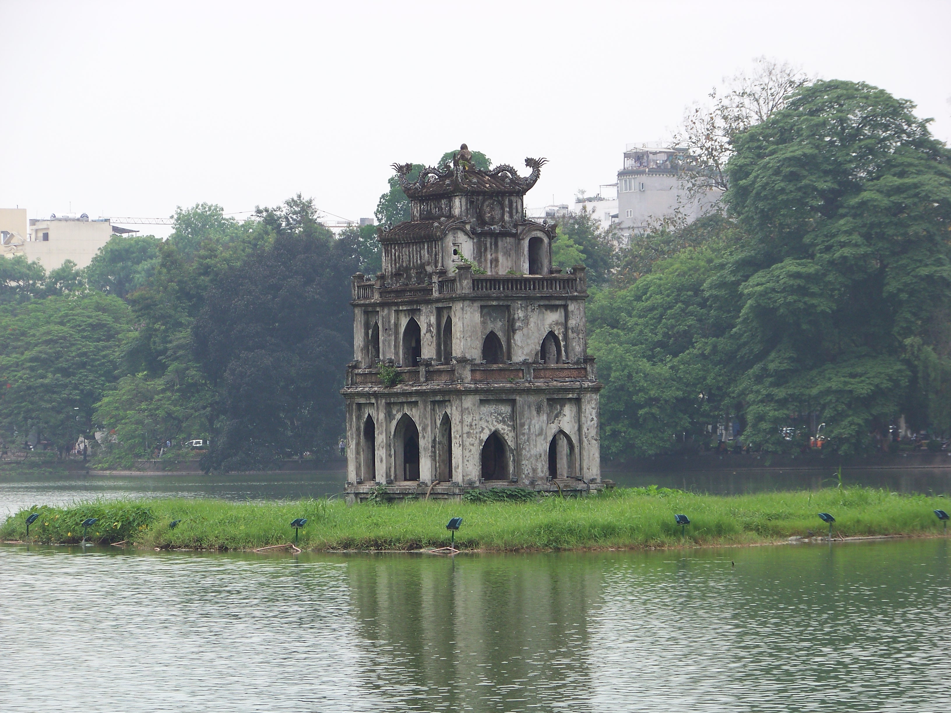 After a quick unpack and a change into shorts, we checked the map provided by the hotel and decided to stroll over to Hoan Kiem Lake, conveniently located in the heart of Hanoi and just a short walk away. Having navigated the busy streets of Bangkok and Kuala Lumpur, we weren’t too fazed by the swarm of mopeds, the chaotic road sense of the masses, and the thick, choking pollution. Carefully, we made our way to the lake’s edge without too much incident.
