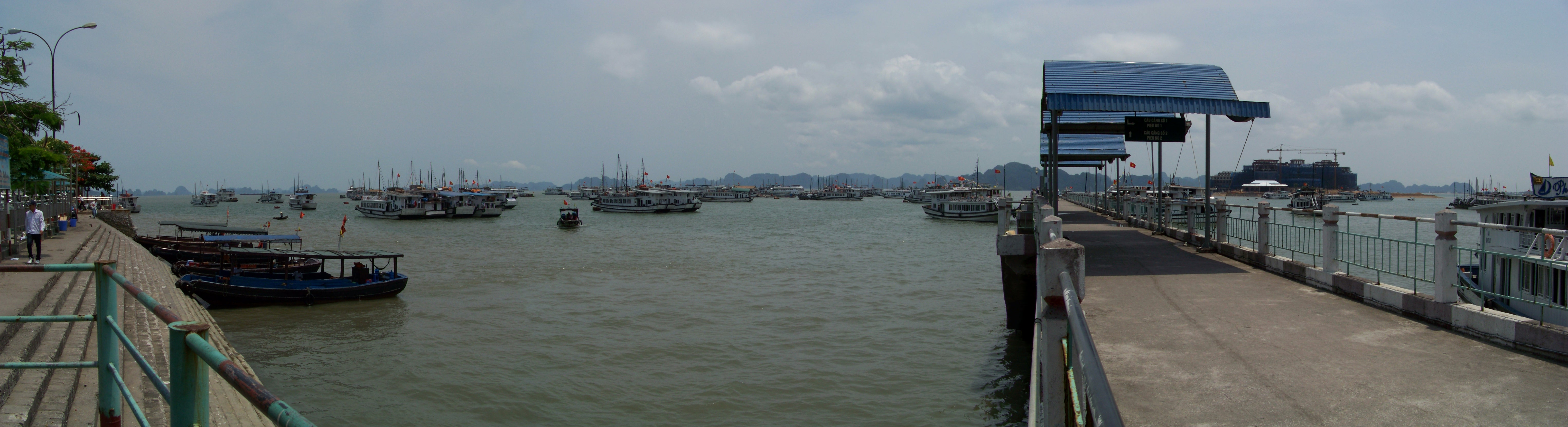 After breakfast, we returned to our room to gather our things. Sue settled in the reception while I took a short wander down the lane, capturing some photos of the Vietnamese having breakfast at the street-side stalls. When I returned, Jenny and Ron were also waiting for the mini-bus to Halong Bay. Right on time, our guide for the next two days led us down the very same lane I’d just photographed, where we boarded the bus alongside six other passengers.