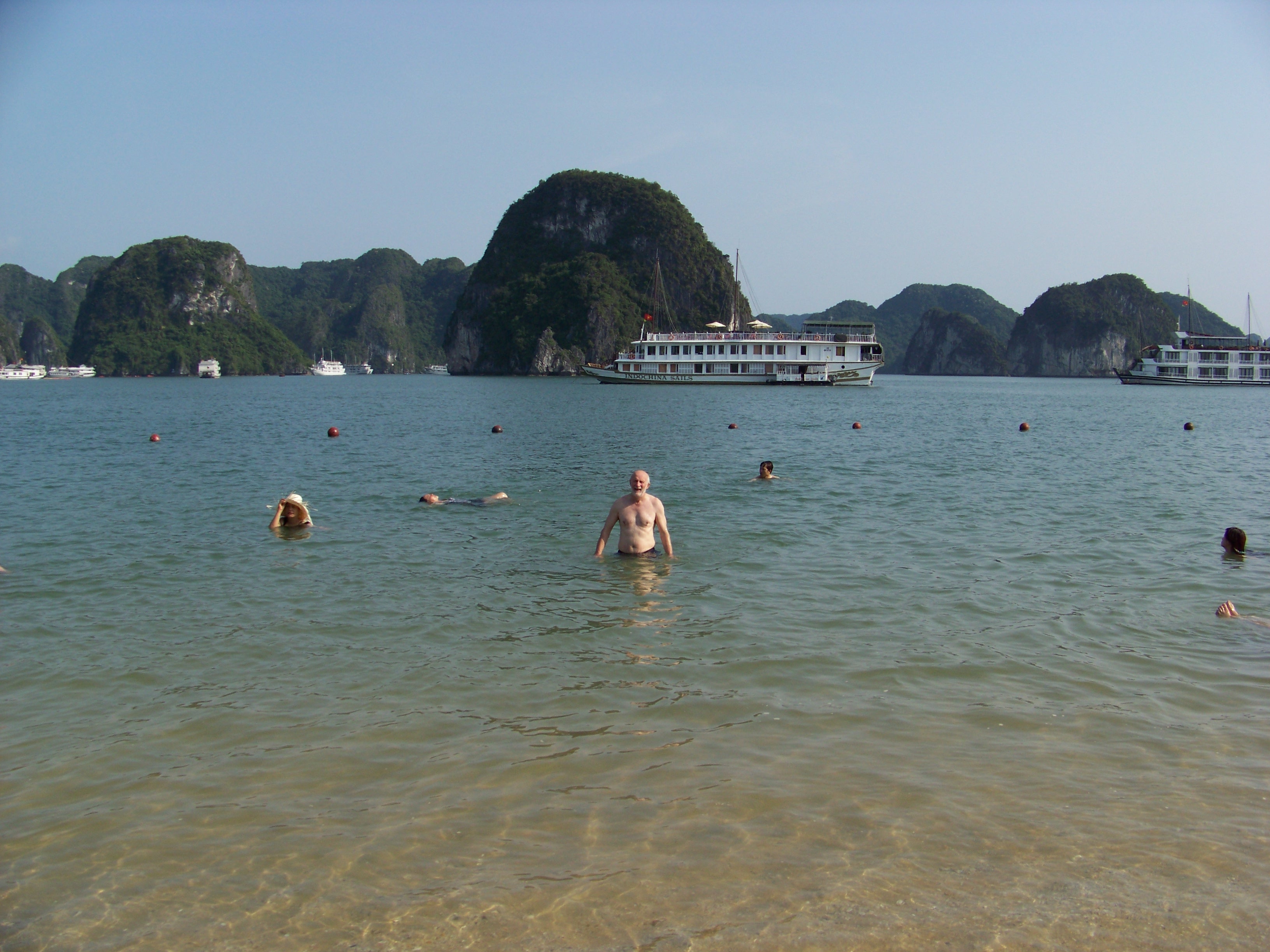 Afterwards, we descended back to sea level, and I decided to take a refreshing swim in the sea. While I was swimming, two young Vietnamese ladies joined me and seemed keen to start a game of “Splash the European.” Of course, I happily joined in, and it quickly became a playful and enjoyable exchange that left them giggling with delight. It was a moment of fun in an otherwise serene setting.