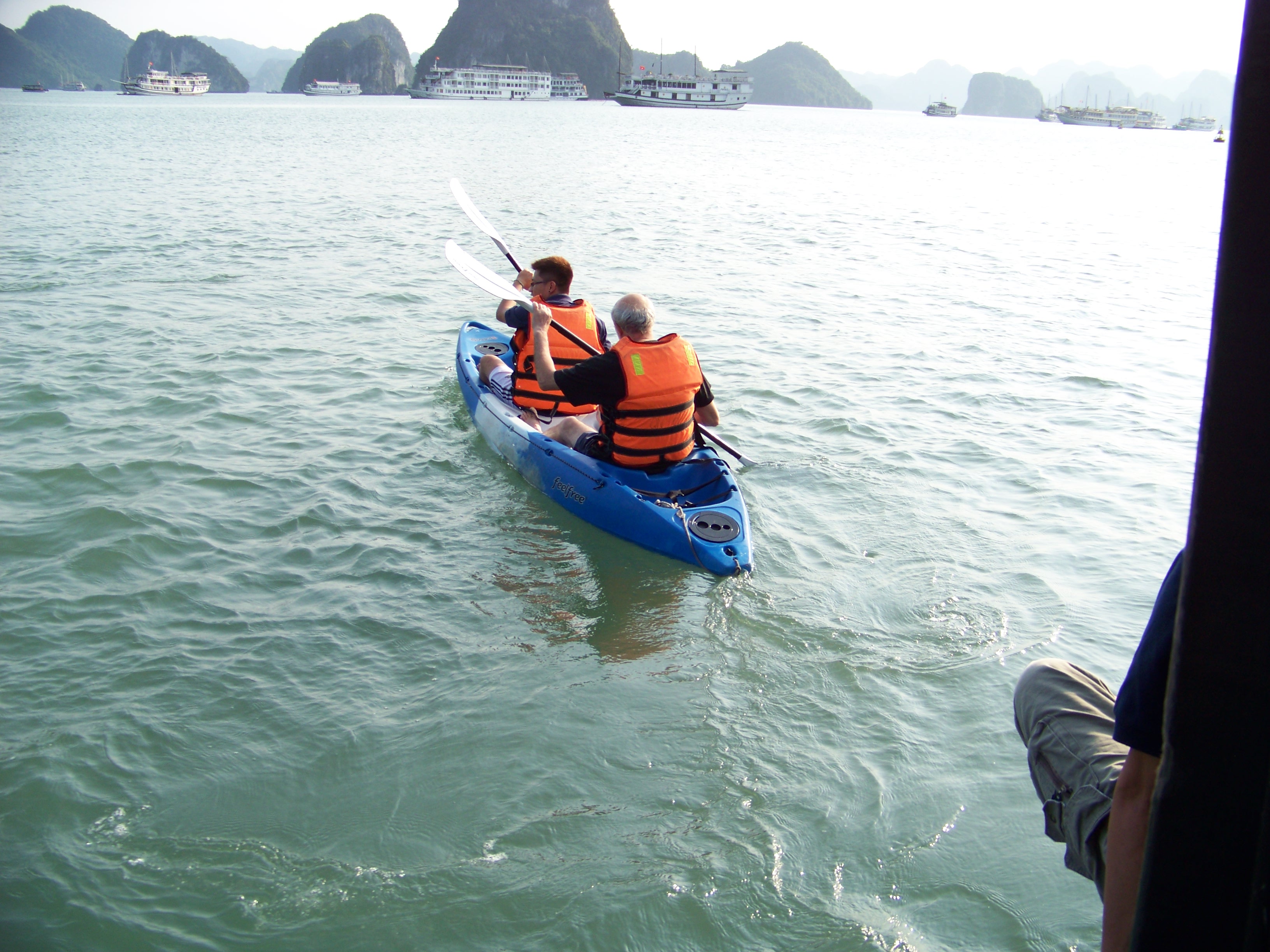 I partnered with our guide, Hung, and we led the other three kayaks through some quite exquisite scenery. We paddled between towering cliffs and passed through sea caves, truly one of the most enjoyable parts of the day. It was peaceful, yet adventurous, and before we knew it, we were back on the boat, sharing stories of our kayaking adventure.