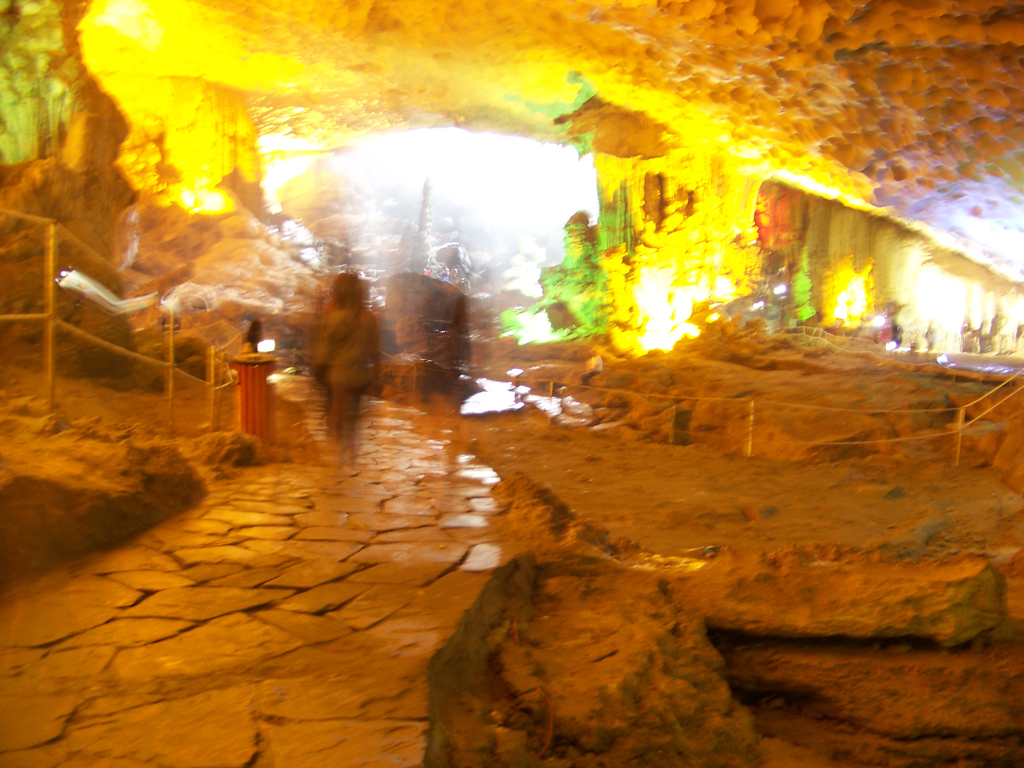 I was mildly surprised by the first of the three chambers. The path leading in had been well paved, though naturally slippery, and well-lit, allowing me to take a few photos. The second chamber was much more intriguing, accessed through a narrow slit that suddenly opened into a vast, colourful expanse. As we made our way down to the floor of the cave, I realised that the entrance we’d come through was just a bulge in the wall, and the cave seemed to stretch far behind and beneath it.