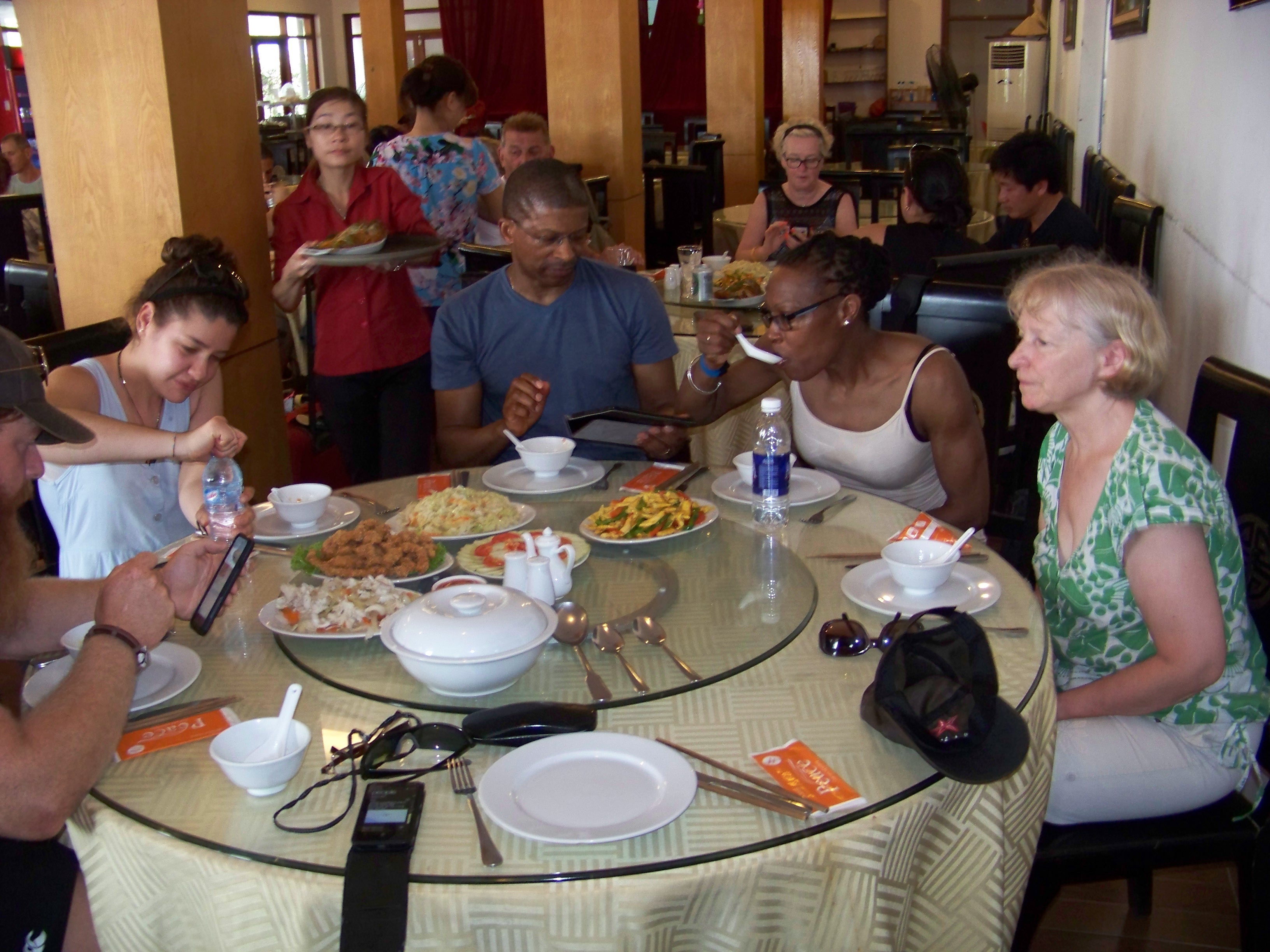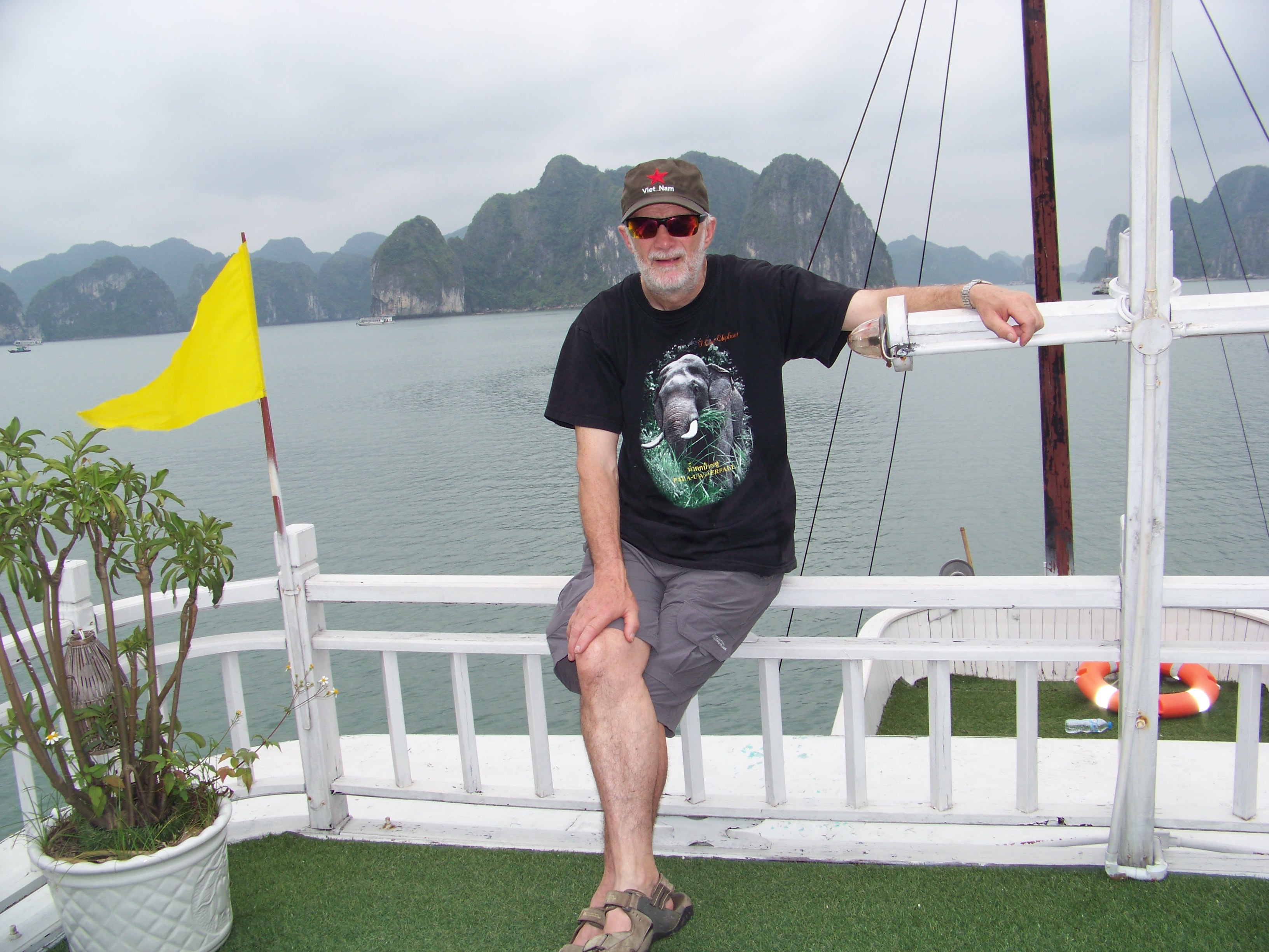 Boarding the bus to return to Hanoi, we were treated to another very substantial meal at a restaurant across from the quay. I’ve discovered that I’ve developed a taste for squid, especially when I douse it in the fiery red condiment that’s always available on the table. Sue has started to worry that I might be turning into a fish lover, but I’ve yet to try the fish that accompanies every meal, so far. I haven’t pointed out to her yet that Vietnamese fish tend to be quite bony (though delicious), whereas squid is a lot easier to eat!