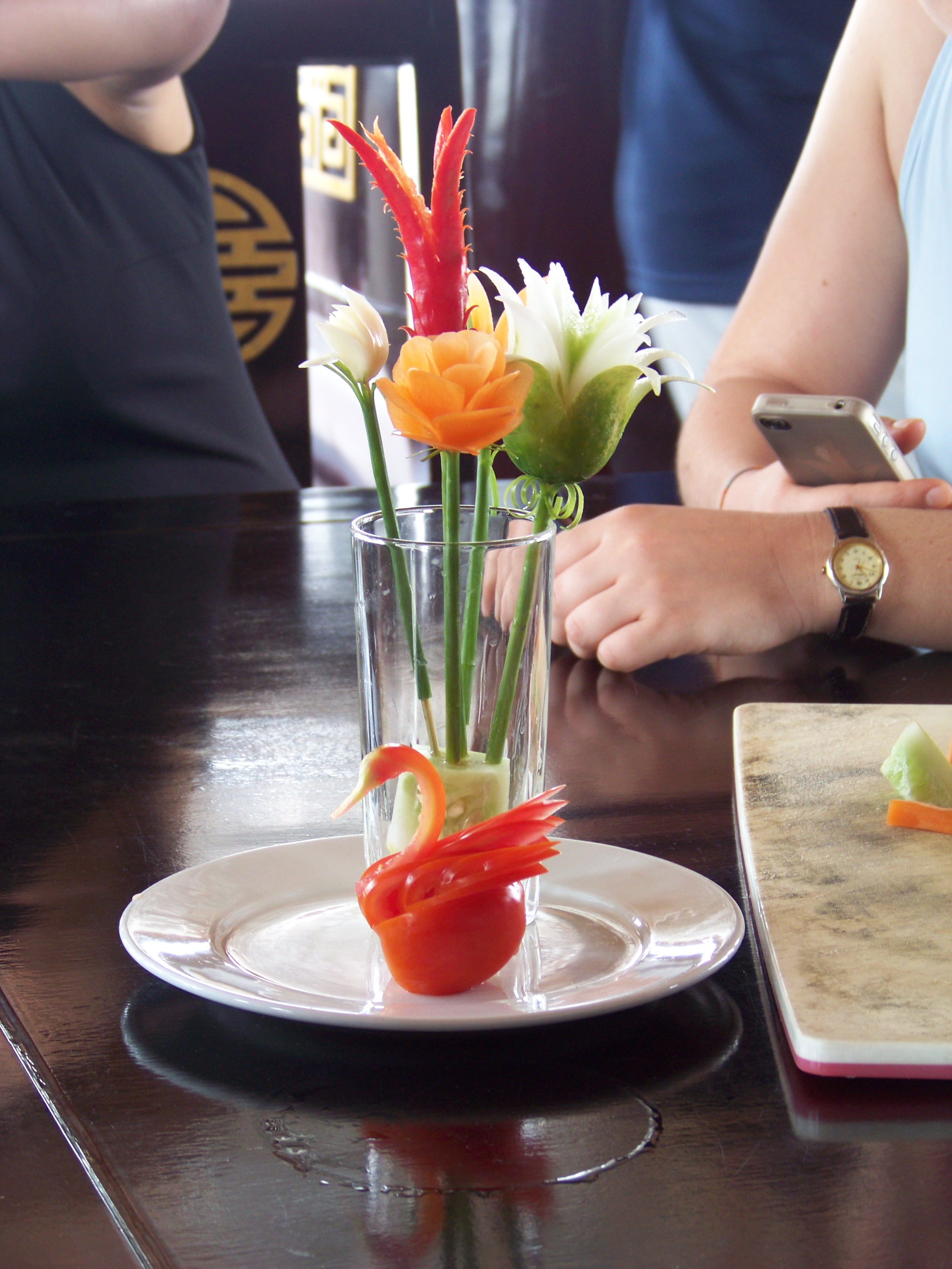 With check-out done, we spent some time lounging on the decks as the boat slowly made its way back to Halong Bay Quay. During the latter part of the journey, the chef treated us to a vegetable flower-making lesson. He made it look so effortless, but I can only imagine that if we had tried, Sunday lunch might have needed to start on a Saturday! Still, it was a fun and unique experience to watch.
