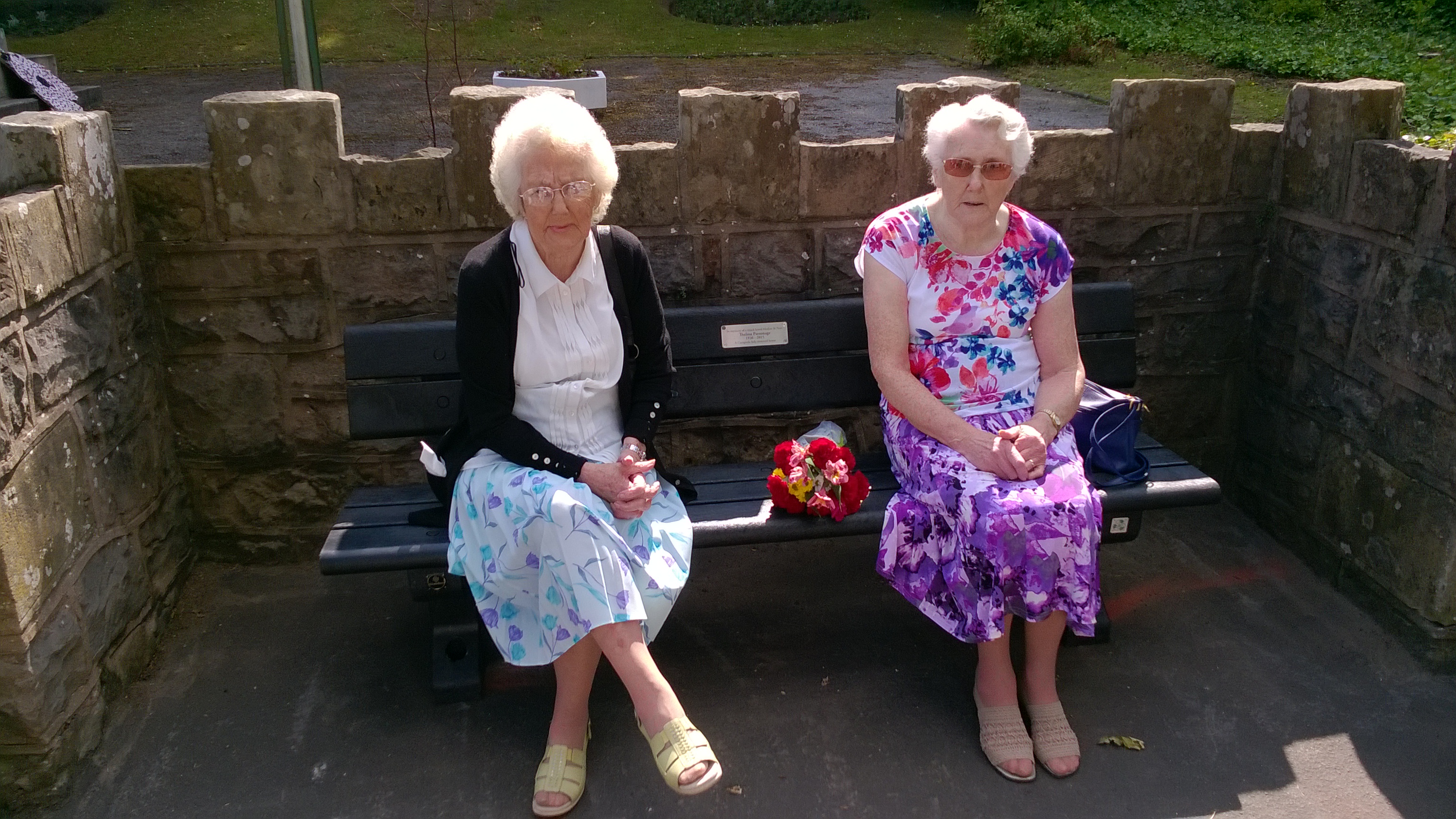We arrived in Caergwrle just as Aunt Josie did, and the bench had already been installed by Cousin Jeff’s sons. It looked splendid, all taped off and in place. Missing Aunt Doreen, I quickly nipped down the road in the car and found her walking, so I gave her a lift.