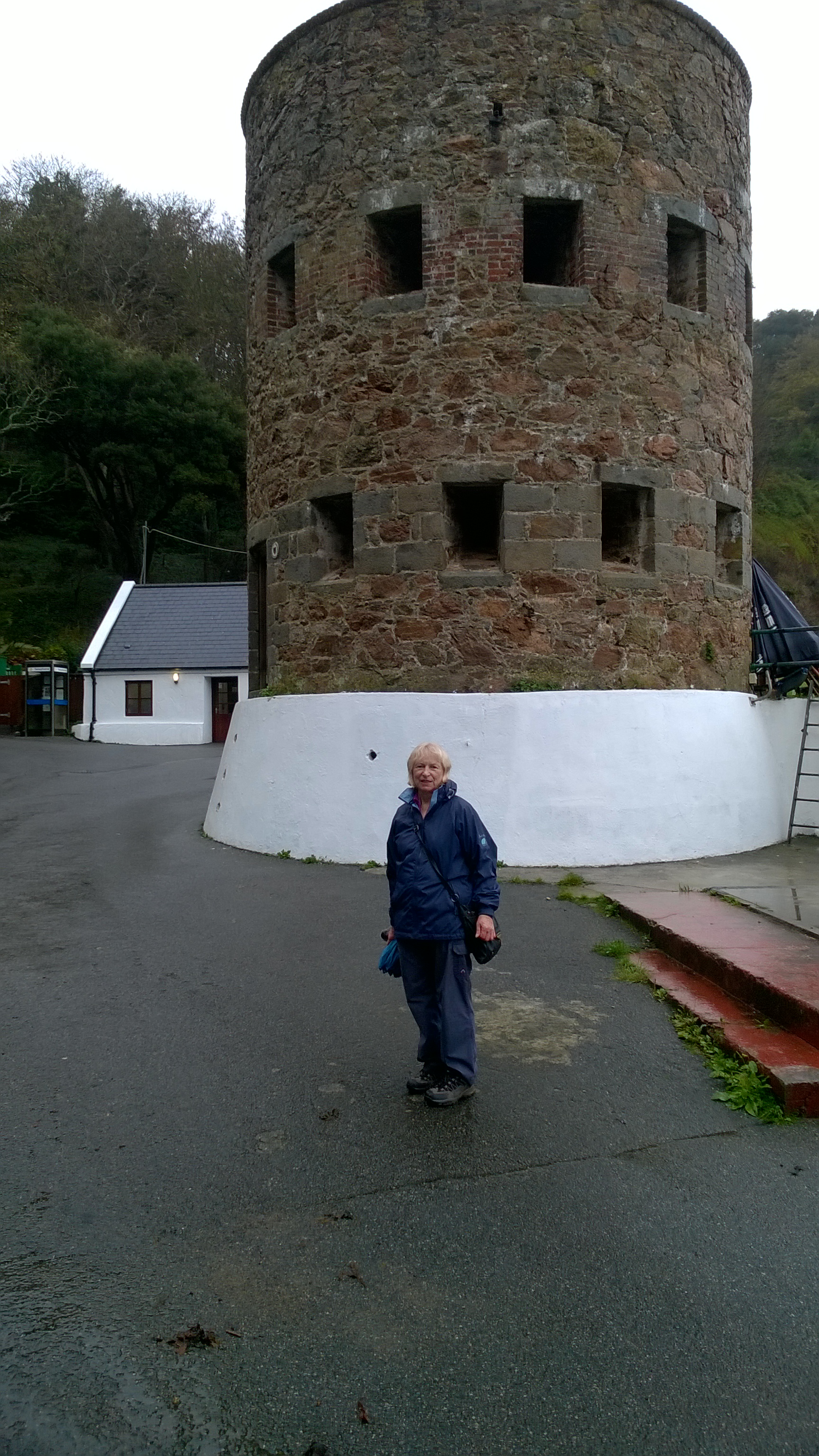 At the bottom of the valley, we arrived at a picturesque pebbly beach nestled in a charming bay. A small café sat just off the shoreline, its doors just beginning to open for the day. According to Sue’s prior research, it had a well-deserved reputation, but we decided to pass it by for now. Instead, we turned our attention to the restored Martello Tower standing proudly at the edge of the beach. After reading the informational board detailing its history and wartime significance, we began our real challenge: the steep cliffside path that would lead us up and away from the bay.