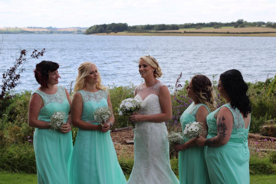 After changing into my suit, Suraj drove me to the cottage in Braunston, while Sue took Sheila and the boys to Normanton Church on Rutland Water. On arriving at the cottage, we were greeted by the photographer as Sarah was preparing for the ceremony. Earlier that morning, the girls had been attended to by a hairdresser and stylist, and they all looked stunning. But when Sarah stepped out in her wedding dress, I was utterly lost for words. My little girl had become a beautiful young woman, and I felt immensely proud to be walking her up the aisle. Before leaving the cottage, the photographer arranged a series of shots of the girls set against a truly idyllic rural backdrop.