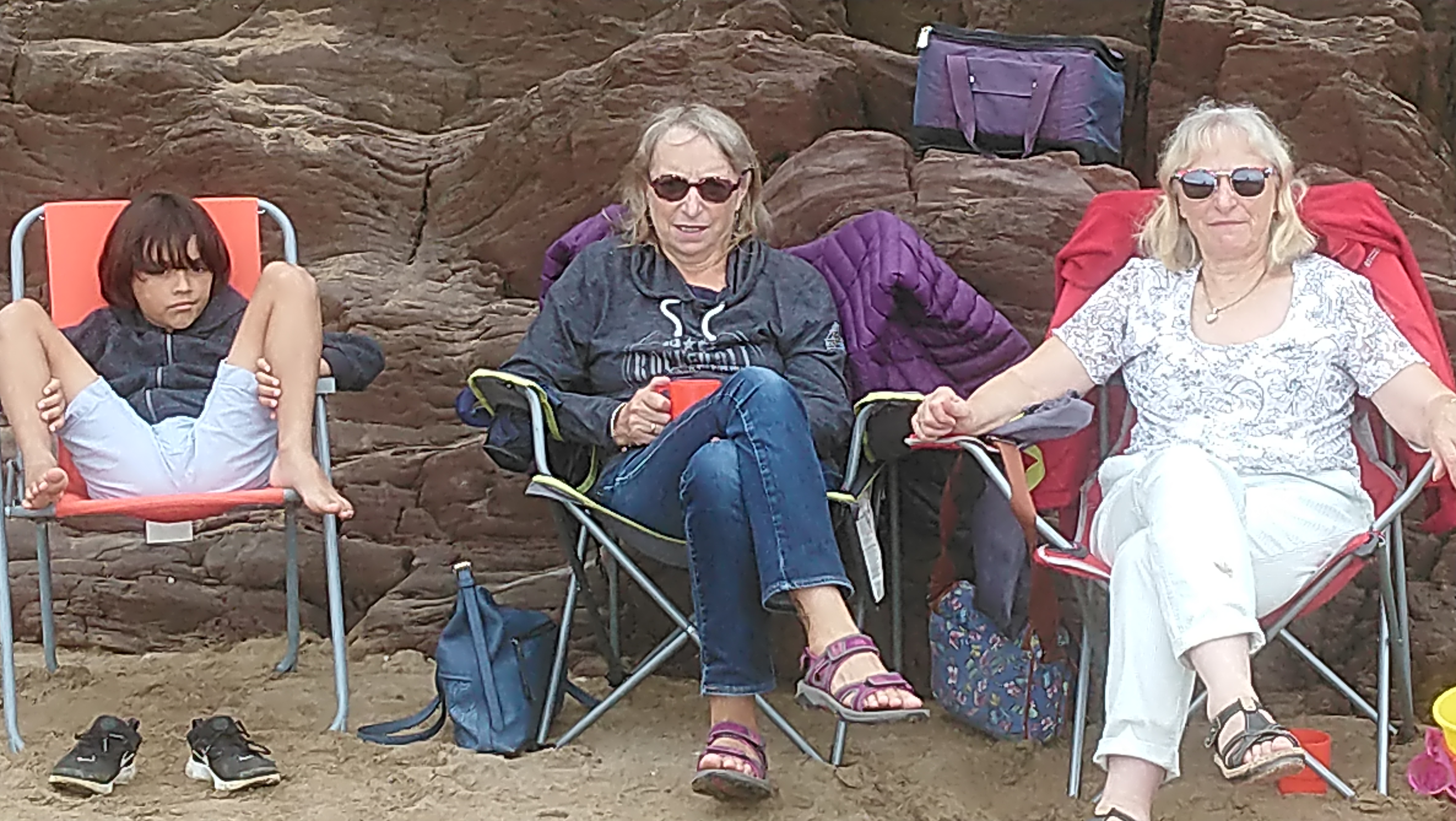 The nearer we came to the coast, the gloomier the skies grew, until the last few miles were cloaked in fog and sea mist. Yet, on arriving and parking above the beach, the murk retreated obligingly offshore, drifting over the headland and distant beaches but leaving ours blessedly clear. (The hazy sun, it seems, does shine on the righteous.) We spent the next three hours happily engaged in traditional seaside pursuits and a picnic, the morning’s frustrations soon forgotten.