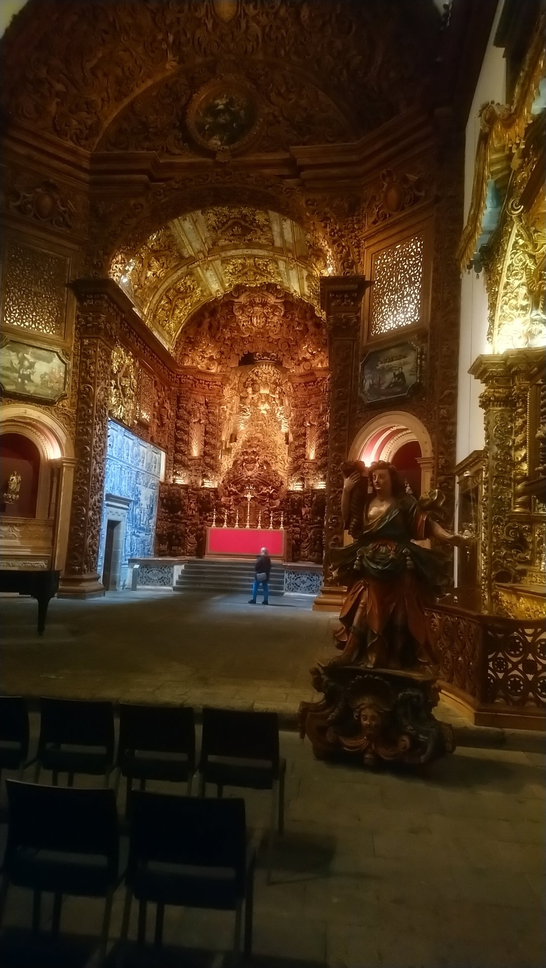 Nearby, the Arts and Culture Museum (Dept. of Sacred Art of C Machado) was open. We had attempted to visit several times in the past, only to find it closed. This time, we finally stepped inside, embarrassingly paying only 90 cents for a €1 entrance ticket (the staff kindly waved us through, perhaps they took pity on us as pensioners). The museum is housed in a former church, originally built by the Jesuits before they were expelled from the island during the Reformation. The grand altar was a masterpiece of intricate carvings, teeming with elaborate designs and figures, the most complex we had ever seen. It was originally intended to be covered in gold leaf, but the Jesuits’ departure left it unfinished. In our opinion, it was all the better for it.