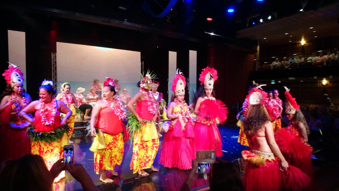 We had noticed during the morning news update from the bridge a certain hesitancy in the weather report, which suggested that all might not be well. That evening, during a formal dinner, our meal was interrupted by an announcement over the PA system from the captain, informing us that a storm lay in our path to Tonga, making docking at the port too dangerous. Instead, we would continue to New Zealand, calling at the Bay of Islands as an alternative. It’s a very picturesque part of the country, Jamie and I visited it on our road trip to the North Island, so we shall wait and see whether any excursions are organised or if it will be a ‘DIY’ stop.