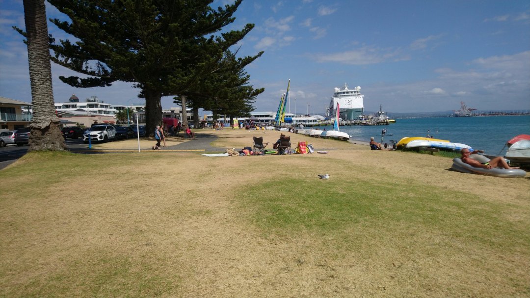 We planned to go to the beach for a swim, but we were waylaid by some highly recommended New Zealand ice cream. The praise we’d heard from fellow passengers was well deserved; it was excellent. After indulging in our frozen treats, the idea of cooling off in the sea no longer seemed quite so essential, so instead, we returned to the ship for a cold beer.