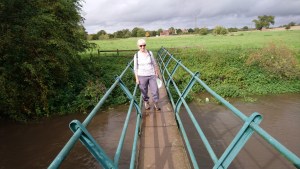Well-fortified, we laced up our hiking boots, powered up the GPS, and set off through the fields next to Coughton Hall on what turned out to be a long and tiring walk. The first part of our route followed the Millennium Way, tracing the picturesque River Arrow. Dark, rain-heavy clouds scudded across the landscape, but thankfully, none passed overhead to unload on us.