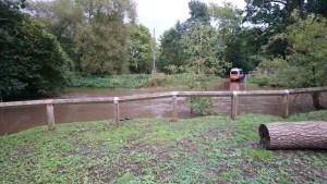 As we neared the River Arrow, we stumbled upon an unexpected scene, a mini-bus full of senior citizens from a nearby residential home stranded mid-ford. The rather overconfident driver had attempted to cross despite the river being in full flood. A taxi stood nearby, presumably arranged to ferry the unfortunate passengers to safety.