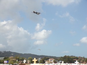 As a finale to our morning, we strolled down the beach until the novelty of sun, sand, sea, and the occasional light aircraft taking off or landing began to wane. When we returned to our earlier spot, we found it had been claimed by another couple, so we continued along the beach to the hotel frontage, stopping for a while to lounge on one of their comfortable, shaded beach sofas. Somewhat disappointed that no staff approached us to offer drinks, we moved on to a small beach stall, where Sue spotted a pretty little dress, perfect for Sarah’s baby girl, and promptly made a purchase.