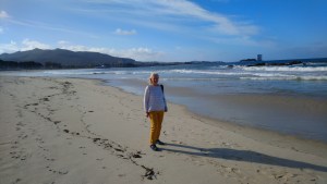 Our first stop was Samil Beach, a public city beach with lovely views across Vigo Bay and excellent sports facilities for locals. Its wide stretch of sand seemed ideal for families on a summer weekend. But today, on a mild Monday morning in winter, apart from a school group armed with clipboards and worksheets, we cruisers were its only visitors.