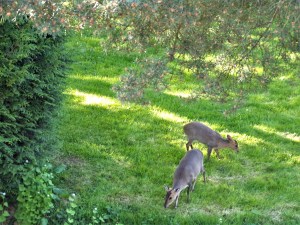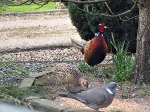 Late in the afternoon, our neighbour Claire texted to let me know that the female muntjac had made an appearance with her newborn. I watched and photographed the little one frisking about manically across the river, revelling in the freedom of open space, while its mother grazed patiently on the freshly mown grass. At the same time, Mr Pheasant and his new lady friend arrived to feed on the grain I had scattered earlier. I suspect she may have a nest with eggs nearby.