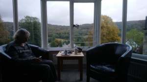 The High Tor Hotel is situated next to the River Derwent, so we followed the path along its course into the town. With the rain doing its worst, we dived into one of the many antique shops and spent some time in ‘Bargain Hunt’ mode, hoping to escape the deluge. After a fruitless search, we retraced our steps to check into the hotel, looking and feeling sodden!