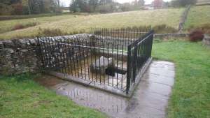 Through the increasing gloom, we first drove to Mompesson’s Well, located on the road above Eyam, heading towards Litton. The Rev. Mompesson used the well to collect money, which he disinfected with vinegar before exchanging it for supplies from traders who left goods for the villagers, thus effectively quarantining the settlement. The well itself was filled with vinegar to disinfect the money placed in it, helping to prevent the spread of the disease.