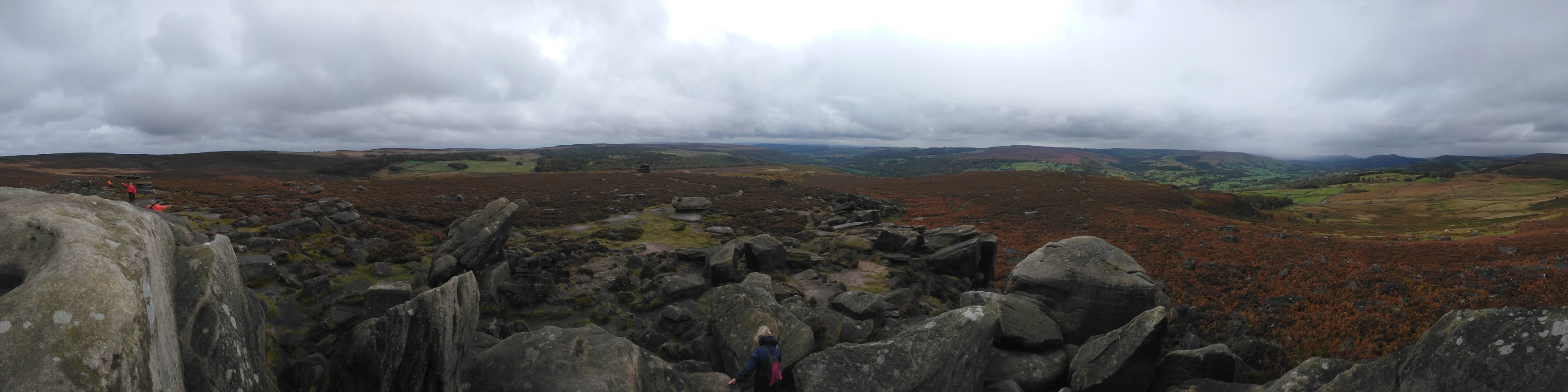 Reaching the base of the Edge before Over Owler Tor, we paused to gather blueberries from a small, sheltered quarry, devouring them eagerly before scrambling up the Edge itself to reach the moorland above. Spotting the Tor to our left, we couldn’t resist the temptation to climb this striking lump of millstone grit, even though it wasn’t on our planned waterfall route. The views from the top were well worth the extra effort.