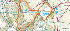 From the Hall, our route took us steeply downhill along an increasingly wet and leaf-strewn, stony path that required great care to navigate. We arrived back at the car just as the deluge began, thankfully seeking its refuge before we dissolved completely!