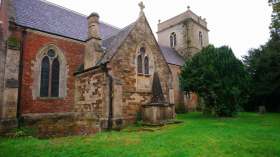 Passing through the village of Carlton Curlieu, we came across the lovely little church of St Mary the Virgin. We spent some time investigating this intriguing feature of the hamlet. Its impressive main entrance was located at the rear, though disappointingly, a rather ugly monument had been ‘plonked’ in front of the main stained-glass window. The church was locked, so we couldn’t venture inside, but an internet search later revealed that we had missed quite a treat.