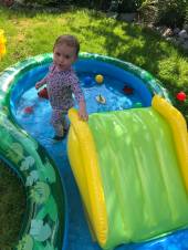To continue the aquatic theme, Sarah and her clan met up with her friend Abbey and family and made a beeline for the nearest body of water. Much like Jamie and company, they kept their cool by testing out some shiny new paddleboards, presumably with varying degrees of grace and balance.
